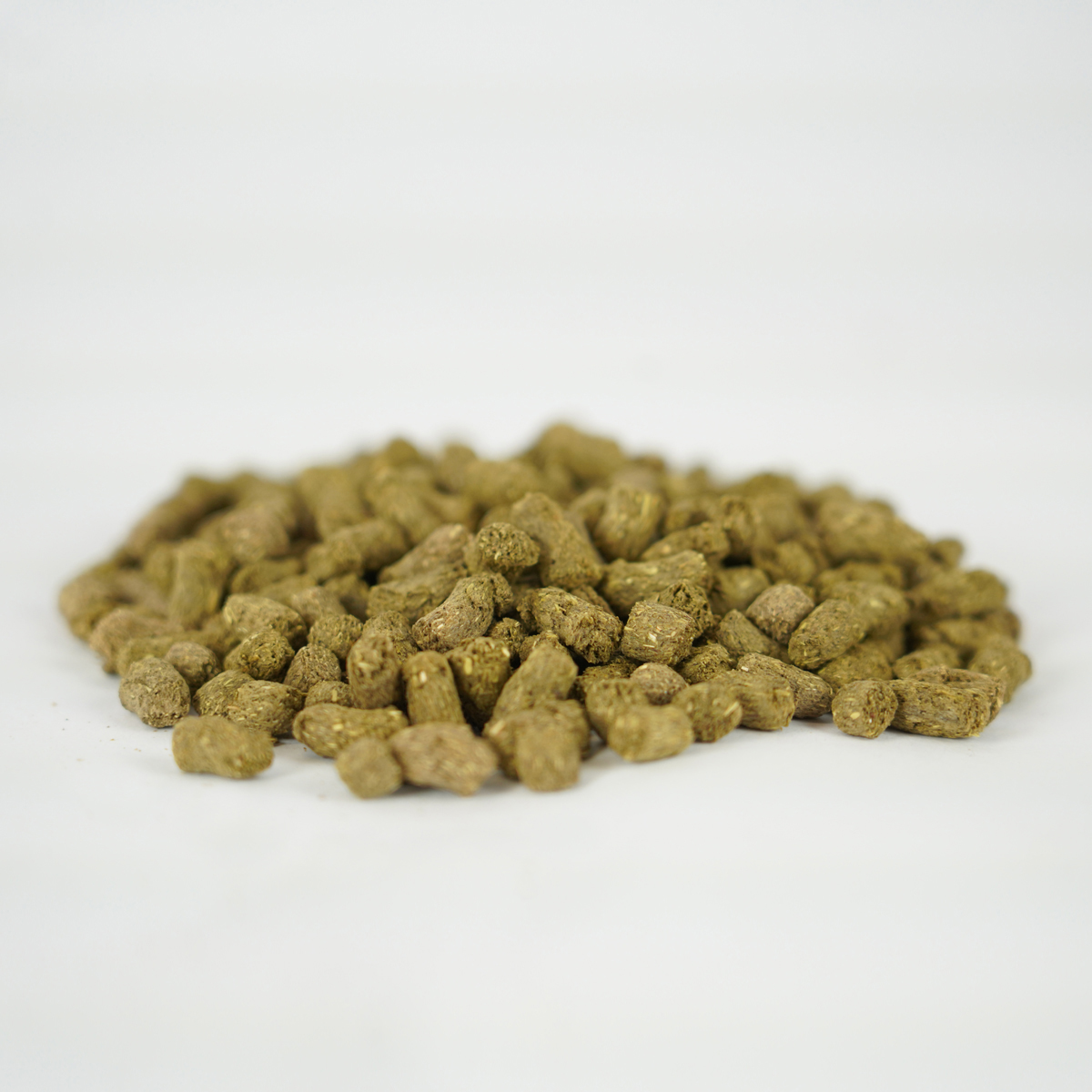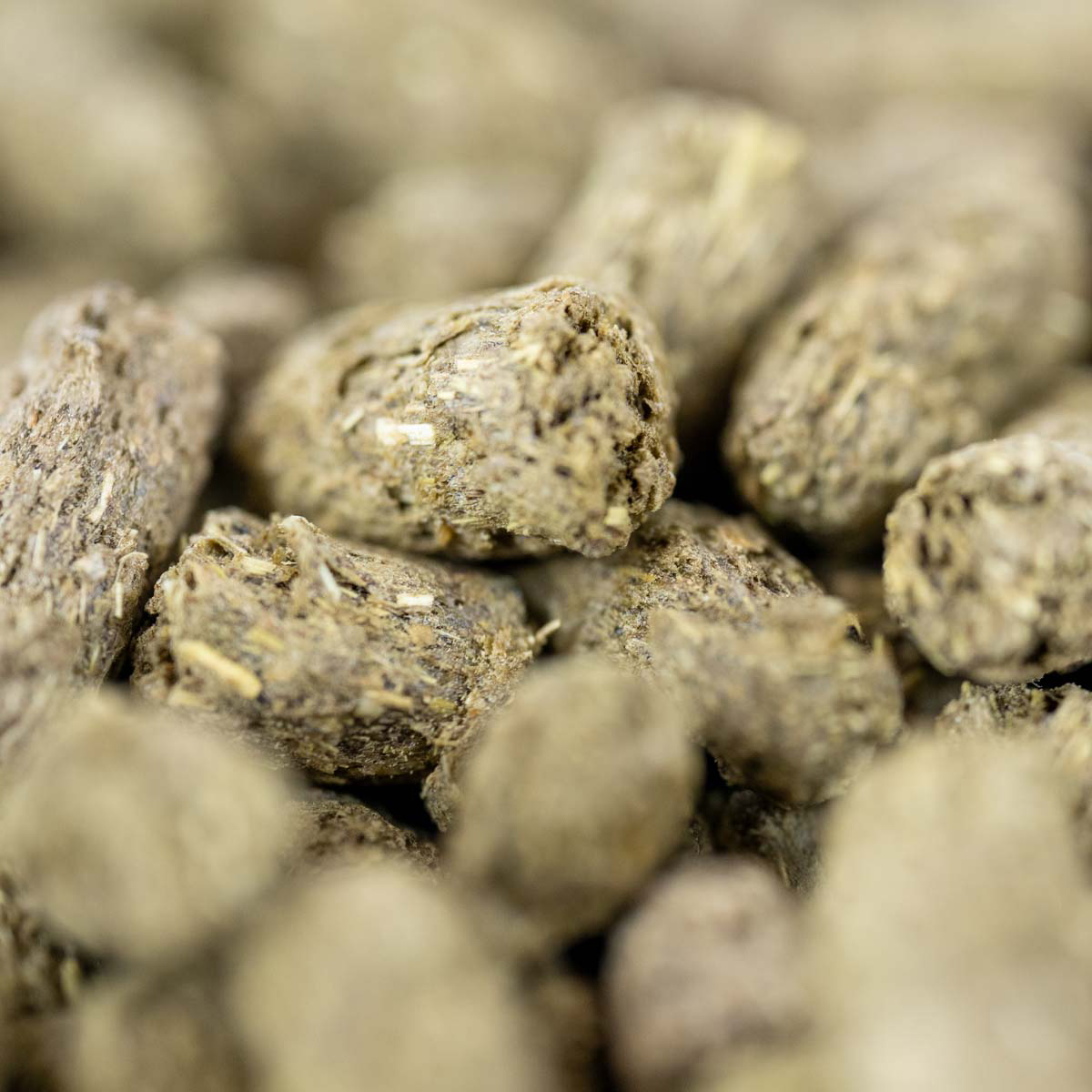 Timothy hooi, tarwe, sojabonenschillen, sojameel, gedroogd gras, gemalen gedroogde johannesbroodschillen, erwtenvlokken, lijnzaden, sojabonenolie, gedroogde tijm, calciumcarbonaat, prebiotica (MOS), yucca-extract