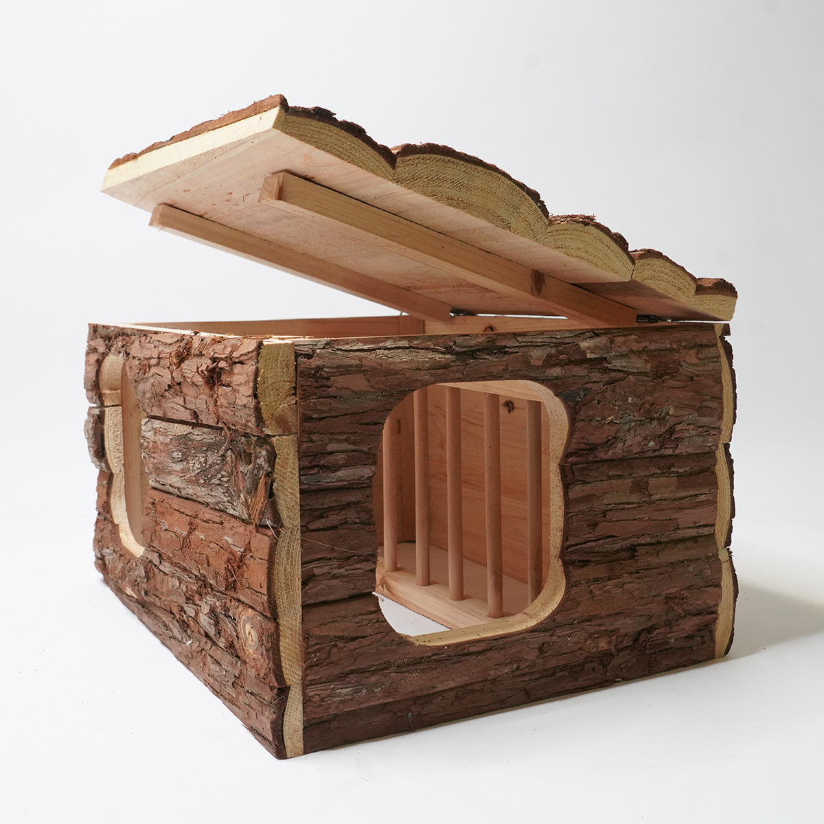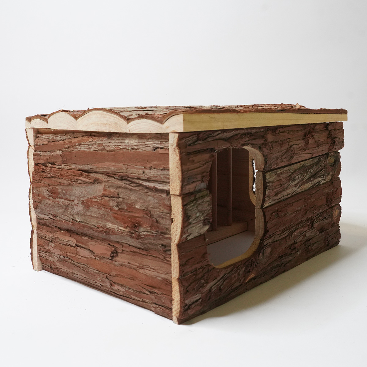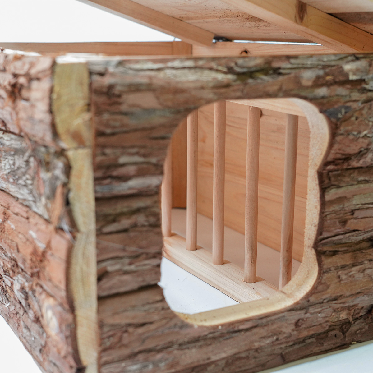 De Hide Lodge is gemaakt van hout zonder harskanalen, aangezien hars giftig kan zijn voor sommige dieren. Hierdoor is het dus veilig voor jouw konijn!