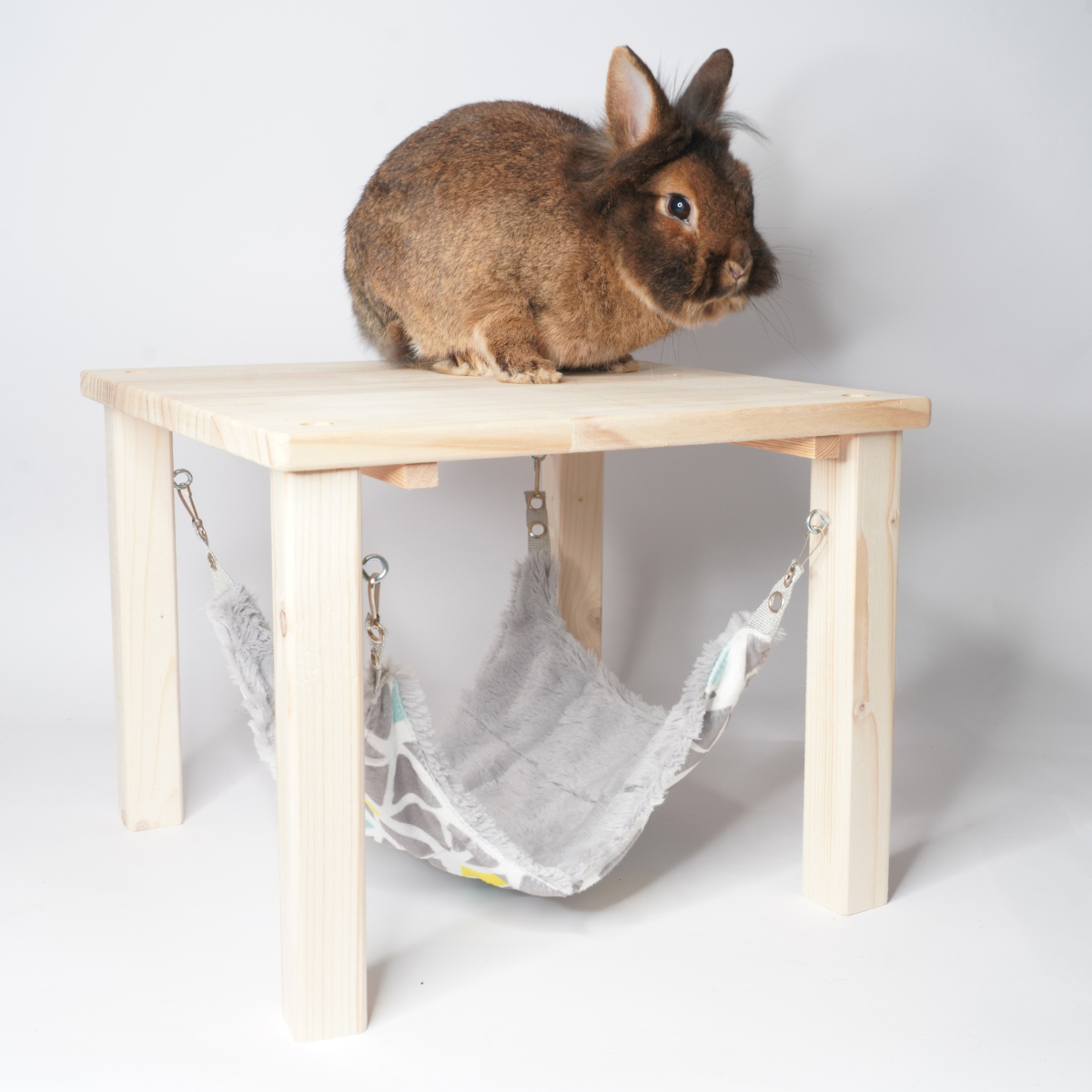 Het Relax Plateau met hangmat is een perfecte plek om te relaxen voor jouw konijn! Konijnen vinden het namelijk heerlijk om op een verhoging te liggen en overzicht te hebben, maar met dit plateau hebben ze ook de mogelijkheid om te schuilen.