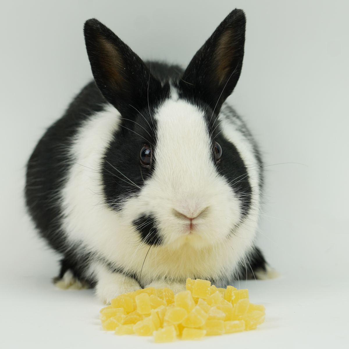 Deze ananas stukjes zijn een heerlijke traktatie voor jouw konijn! Maak het hooi aantrekkelijk door ze erdoorheen te mengen of gebruik ze als beloning in een denkspel.