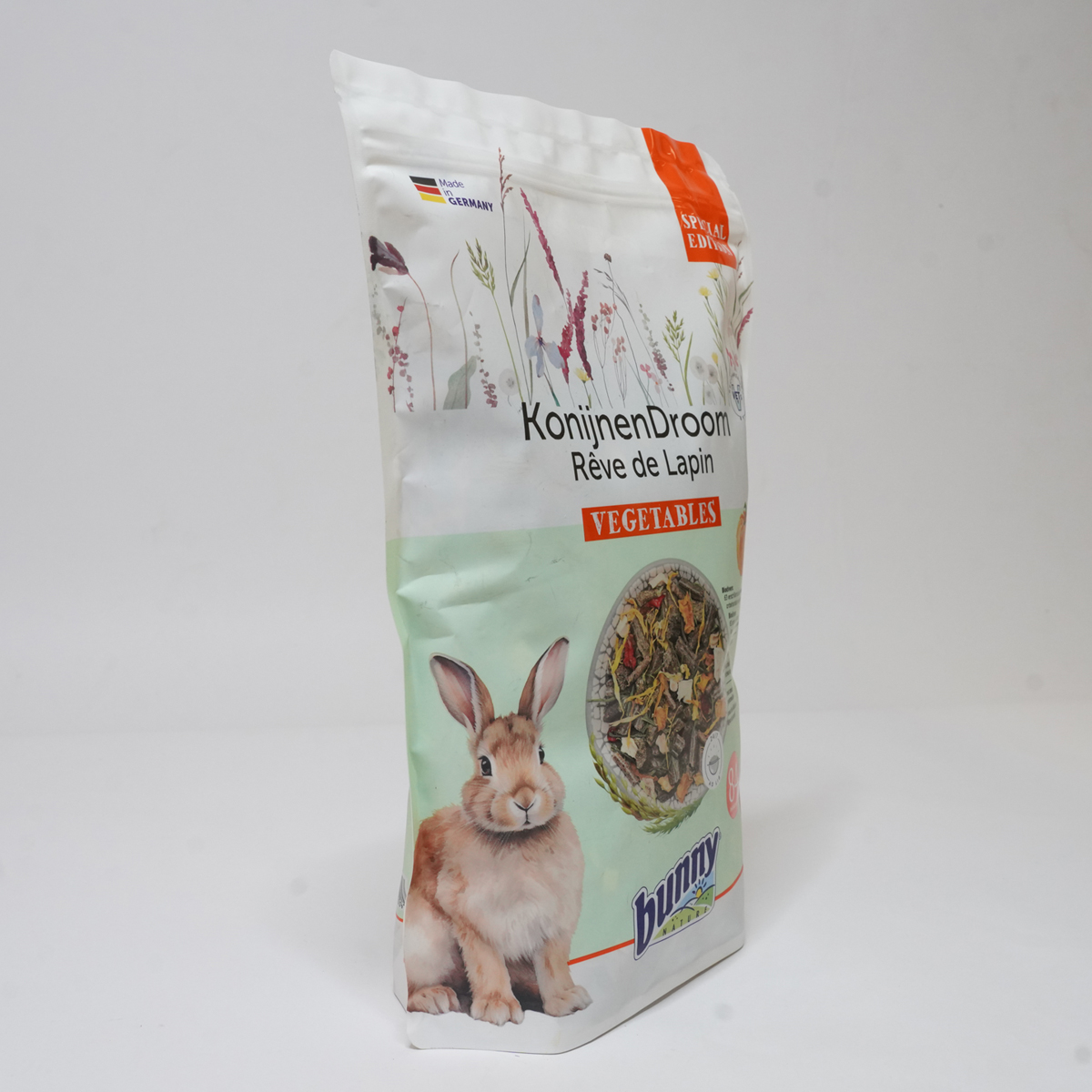 BunnyNature Konijnendroom Vegetables is een harmonieuze mix van brokjes en groenten. Deze variant kan je gebruiken om af te wisselen of te mixen met de standaard brokken: