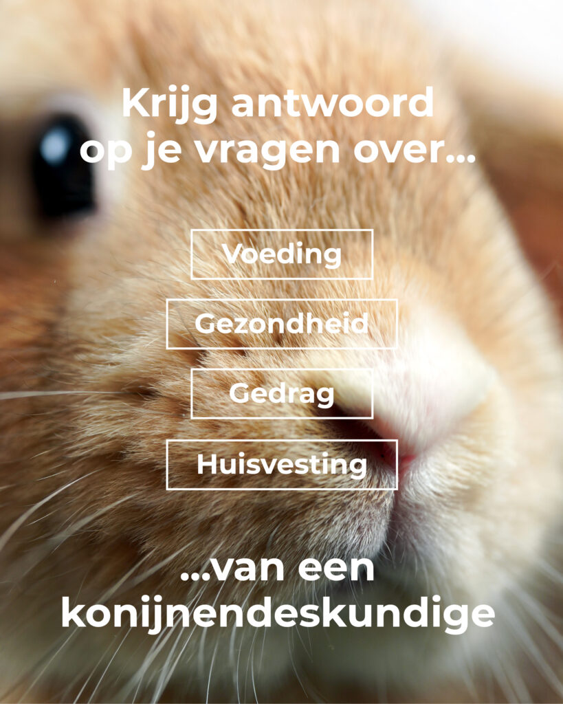 Beantwoord een aantal vragen over je konijn en ontvang gratis persoonlijk advies van een ervaren konijnendeskundige.