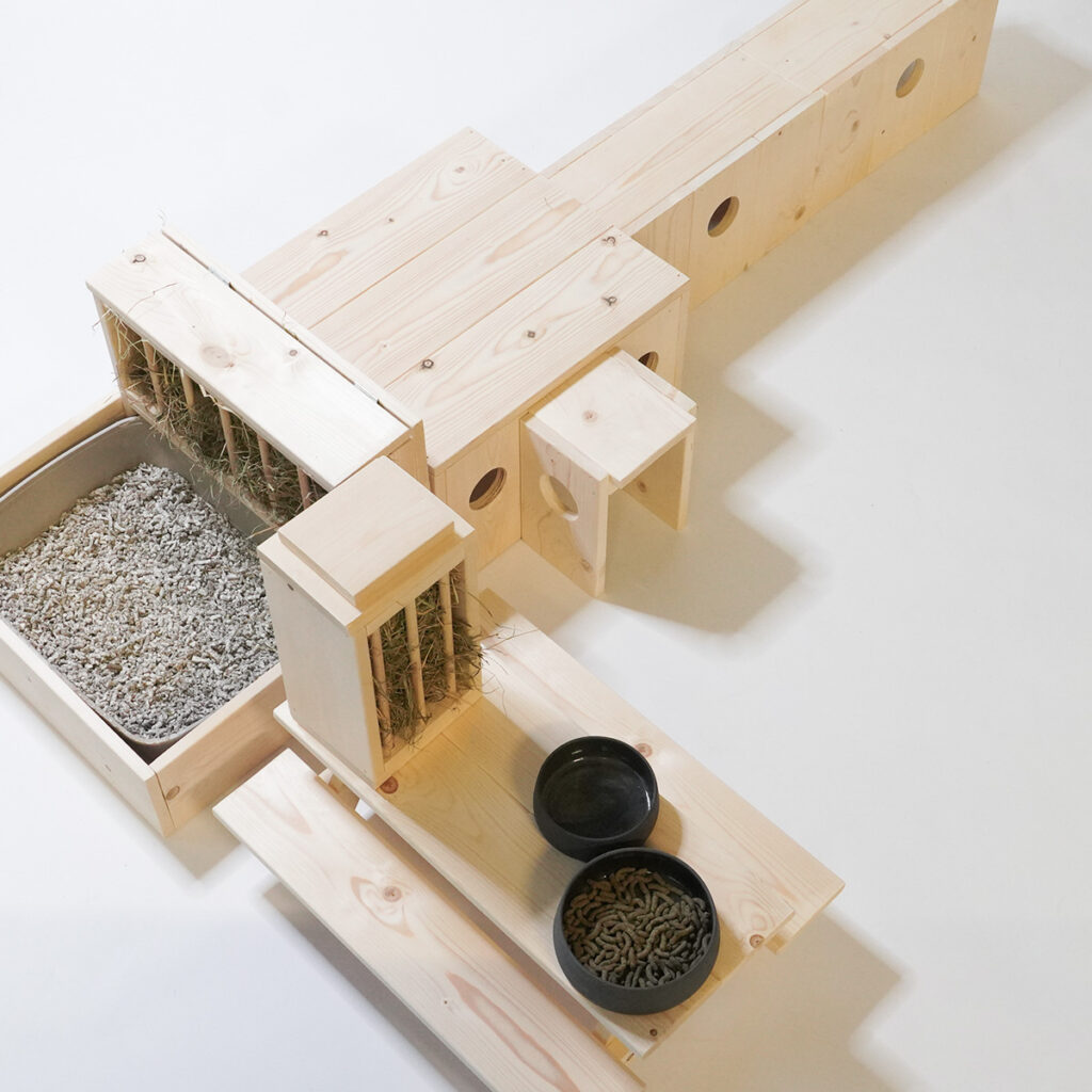 Gemaakt in ons atelier speciaal voor konijnen. Zo wordt er rekening gehouden met de behoeften van jouw konijn.