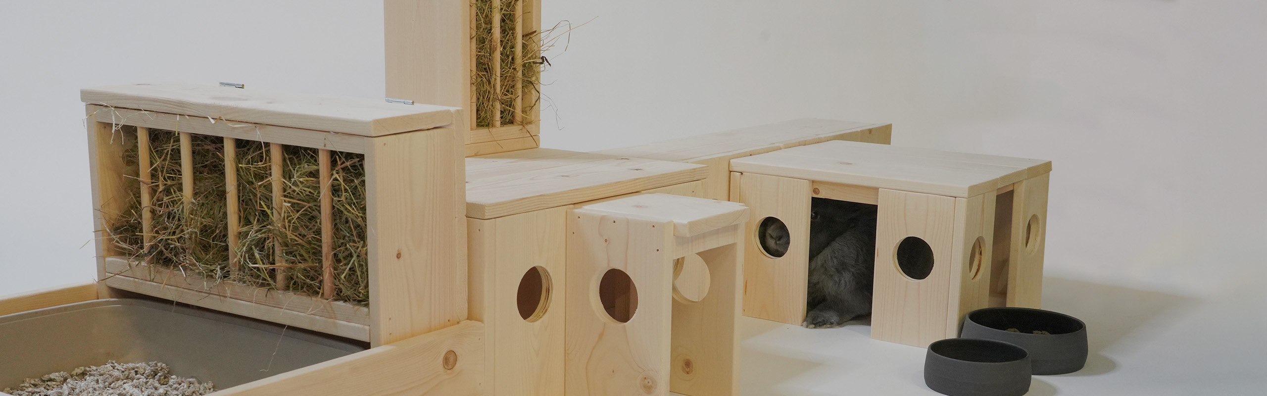 Gebruik je creativiteit, want onze producten zijn zelf samen te stellen. Maak de perfecte combinatie voor jouw konijnen! En door het neutrale uiterlijk passen onze producten in ieder verblijf.
