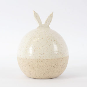 Jouw Konijn werd verliefd op de ontwerpen van Carolina en gelijk kwamen er ideeën voort om samen een collectie te ontwerpen. Een handgedraaide urn met konijnenoren en prachtige voer- en drinkbakken werden bedacht en gemaakt.