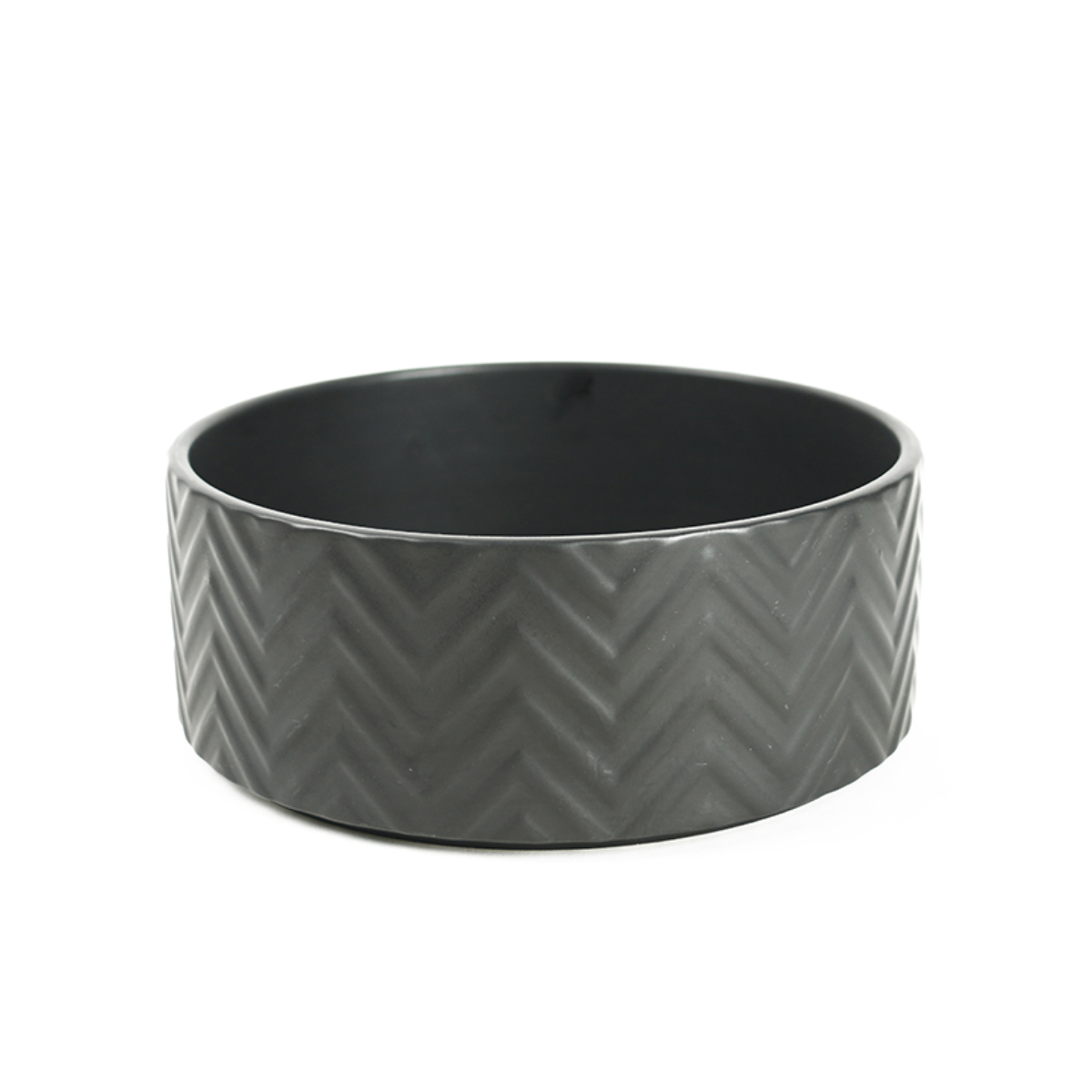 Deze ronde, zwarte voer- en drinkbak heeft een modern ribbel-mozaïek design. De voerbak is zwaar, waardoor jouw konijn hem niet zo makkelijk omgooit.