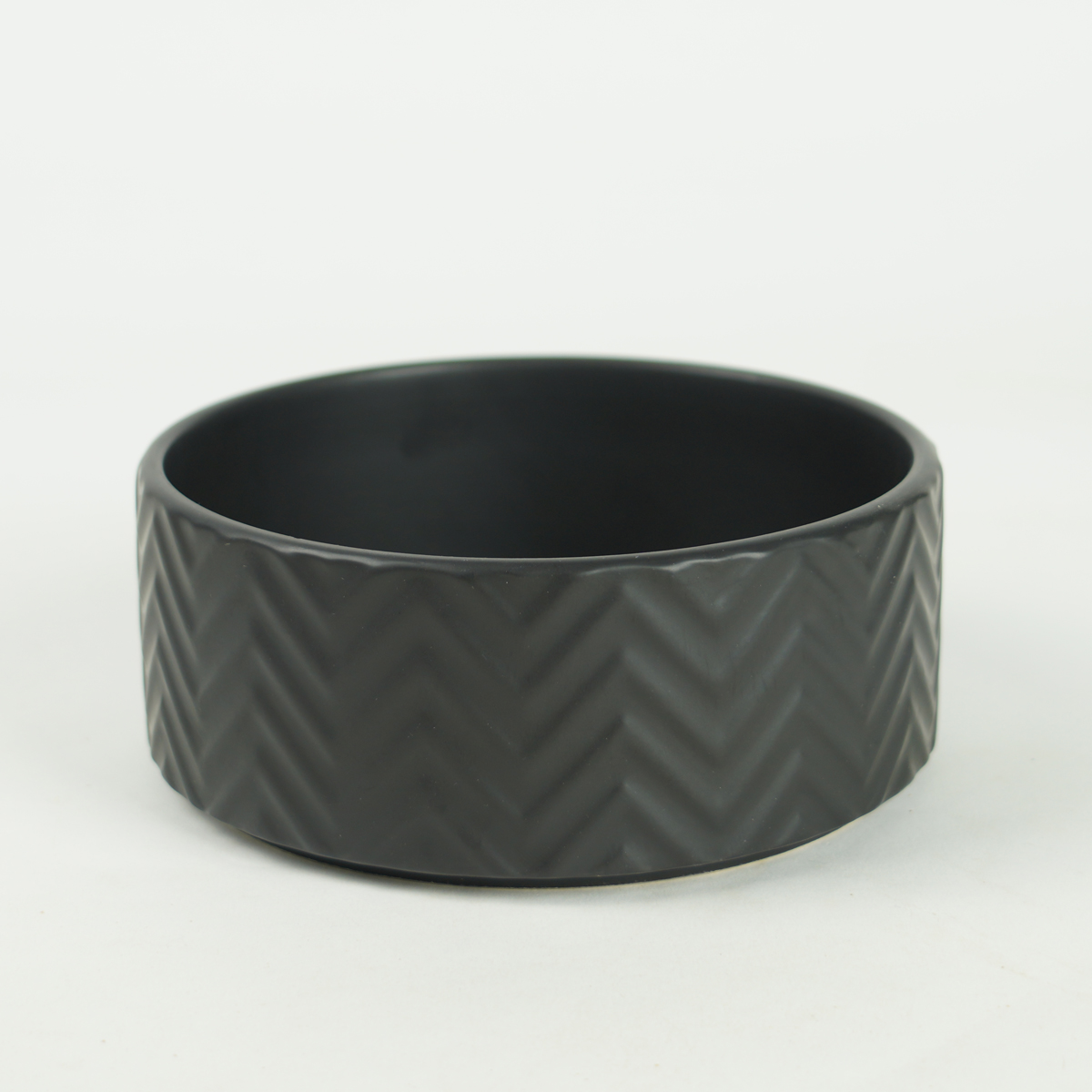 Deze ronde, zwarte eet- en drinkbak heeft een modern ribbel-mozaïek design. De voerbak is zwaar, waardoor jouw konijn hem niet zo makkelijk omgooit.