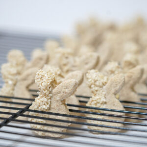 De koekjes komen uit onze eigen keuken en worden gemaakt met uitsluitend natuurlijke ingrediënten. Zo weten we 100% hoe de koekjes worden gemaakt en dat ze daarmee gezond en veilig zijn voor jouw konijn!