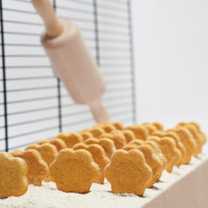De koekjes komen uit onze eigen keuken en worden gemaakt met uitsluitend natuurlijke ingrediënten. Zo weten we 100% hoe de koekjes worden gemaakt en dat ze daarmee gezond en veilig zijn voor jouw konijn!