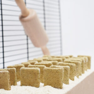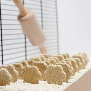 De koekjes komen uit onze eigen keuken en worden gemaakt met uitsluitend natuurlijke ingrediënten. Zo weten we 100% hoe de koekjes worden gemaakt en dat ze daarmee gezond en veilig zijn voor jouw konijn!