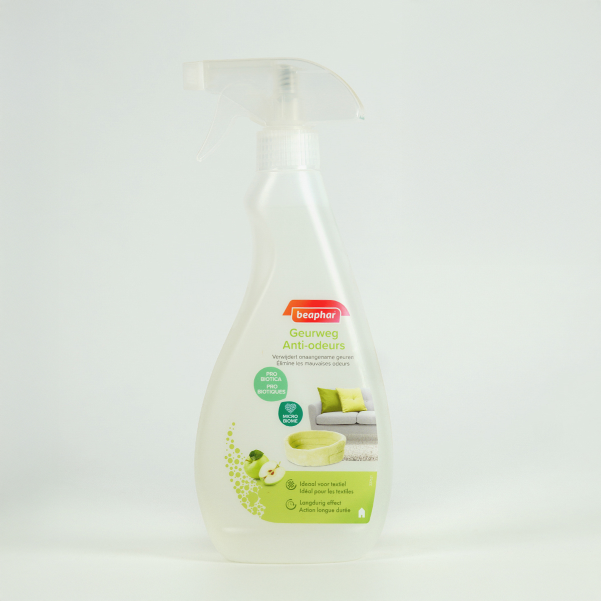 De Geurweg spray van Beaphar verwijdert onaangename geuren veroorzaakt door jouw konijn, zoals urine. De spray heeft een frisse appelgeur.
