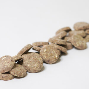 Aanplant van blijvend grasland (doddegras, zwenkgras, grote vossenstraat, engels raaigras, roodzwenkgras, veldbeemdgras, kropaar, honinggras, eenjarig beemdgras, wit struisgras, reukgras, kweek, smeel, rietgras, witte klaver, rode klaver, paardebloembladeren, duizendbladkruid, smalle weegbree, karwij, fluitenkruid, moerasspirea, gewone hoornbloem, walstro, heidebloem-ereprijs, heggewikke, smeerwortel, akkervederdistel, madeliefjes, gamanderereprijs, vrouwenmantel, grote pimpernel, smalbaldige wikke, knolsteenbreek, kamgras, voorjaarsvingerkruid, akkerereprijs, vroegeling, herfstpaardenbloem, rood struisgras, sleutelbloem, kleine klaver), doddegras, haferzemelen, tarwezemelen, havervlokken, eendenkroos eiwit (7,3%), wortelpulp, lijnzaadextractieschroot, zonnebloemextractieschroot, koolzaadfextractiechroot, mariadistelzaad (2%), bierbostel, biergist, spirulina (1%), lignocullulose (1%), paardenbloemwortel (0,7%), paardebloembladeren, inuline (0,6%), brandnetelbladeren, rozenbottelschillen, smalle weegbreeblaadjes, camillebloesems