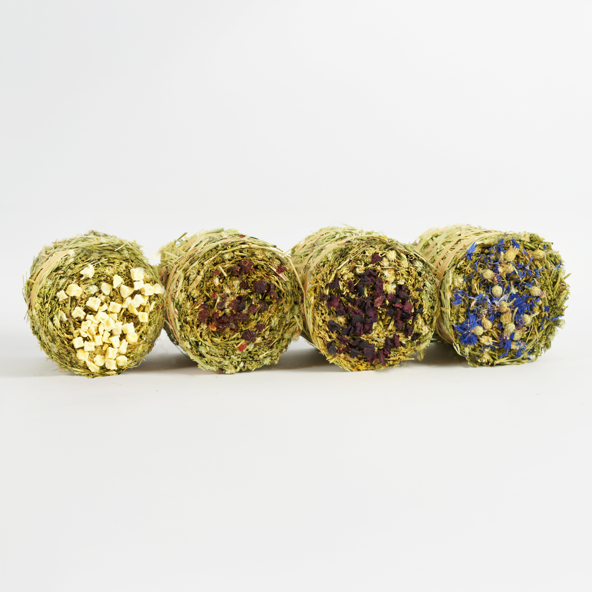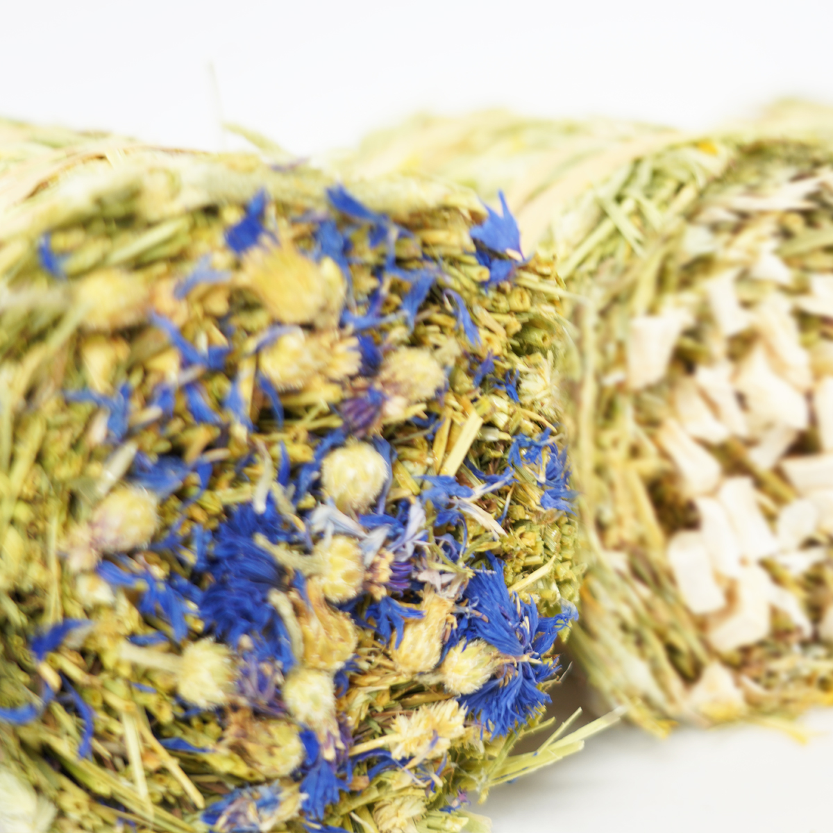 Deze Hay cakes zijn een smakelijke traktatie van Timothy hooi en 100% natuurlijke ingrediënten. Leg de rol van hooi in het verblijf van jouw konijn en laat ze knabbelen, snuffelen en graven om bij de heerlijke topping te komen. Hiermee stimuleer je het natuurlijke gedrag van jouw konijn en voorkom je verveling.