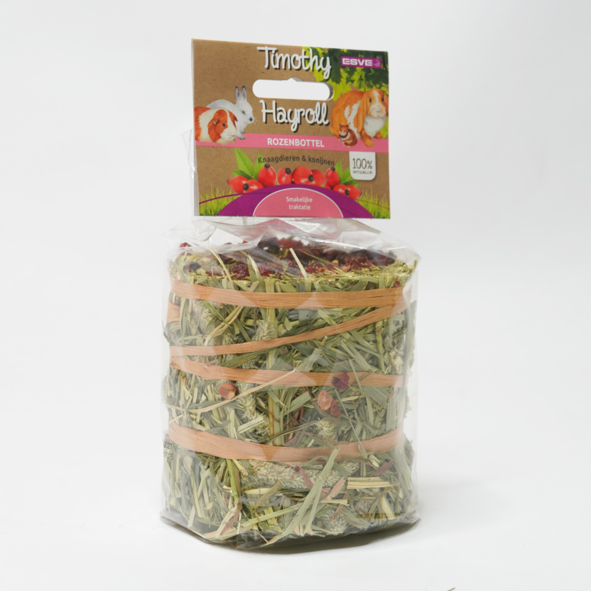 Deze hay cake is een smakelijke traktatie van Timothy hooi en rozenbottel. Leg de rol van hooi in het verblijf van jouw konijn en laat ze knabbelen, snuffelen en graven om bij de heerlijke topping te komen. Hiermee stimuleer je het natuurlijke gedrag van jouw konijn en voorkom je verveling.