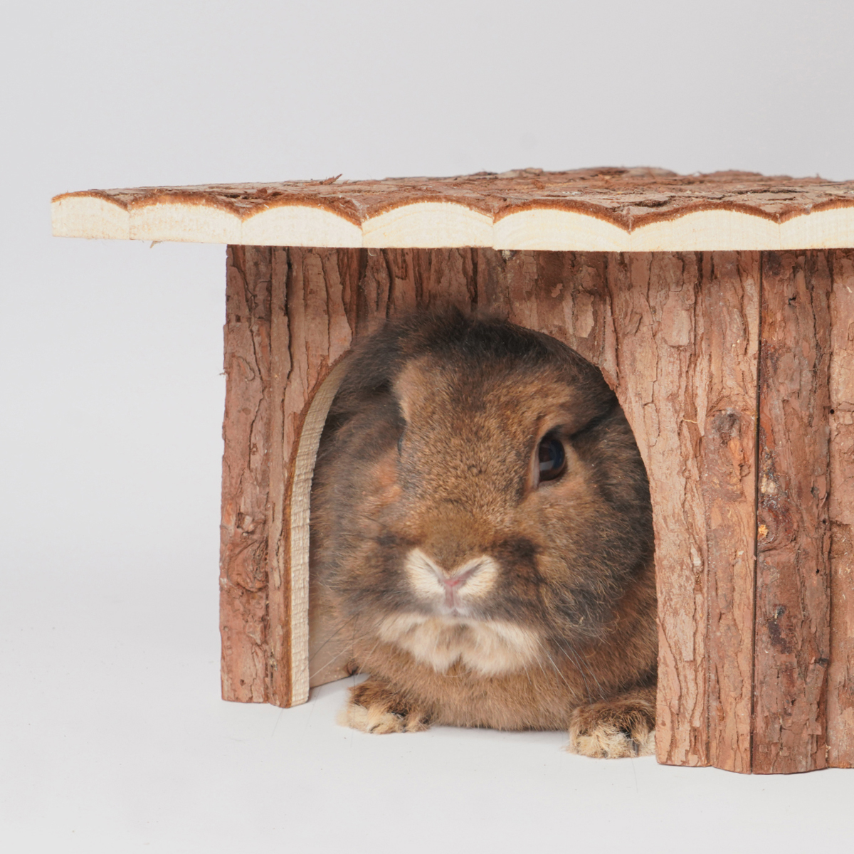 De Hide Triangle is gemaakt van hout zonder harskanalen, aangezien hars giftig kan zijn voor sommige dieren. Hierdoor is het dus veilig voor jouw konijn!