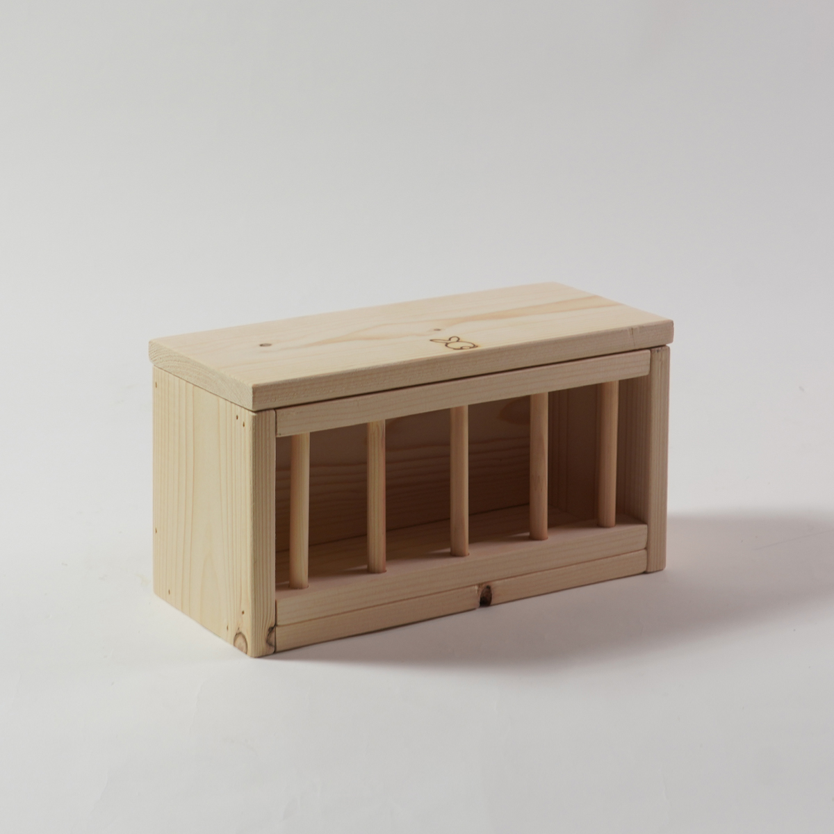 Hooiruif Loki is een hangend hooiruif voor jouw konijn! Vul het ruif makkelijk met hooi door de afneembare klep aan de bovenkant. Het onbewerkte hout is veilig voor konijnen.