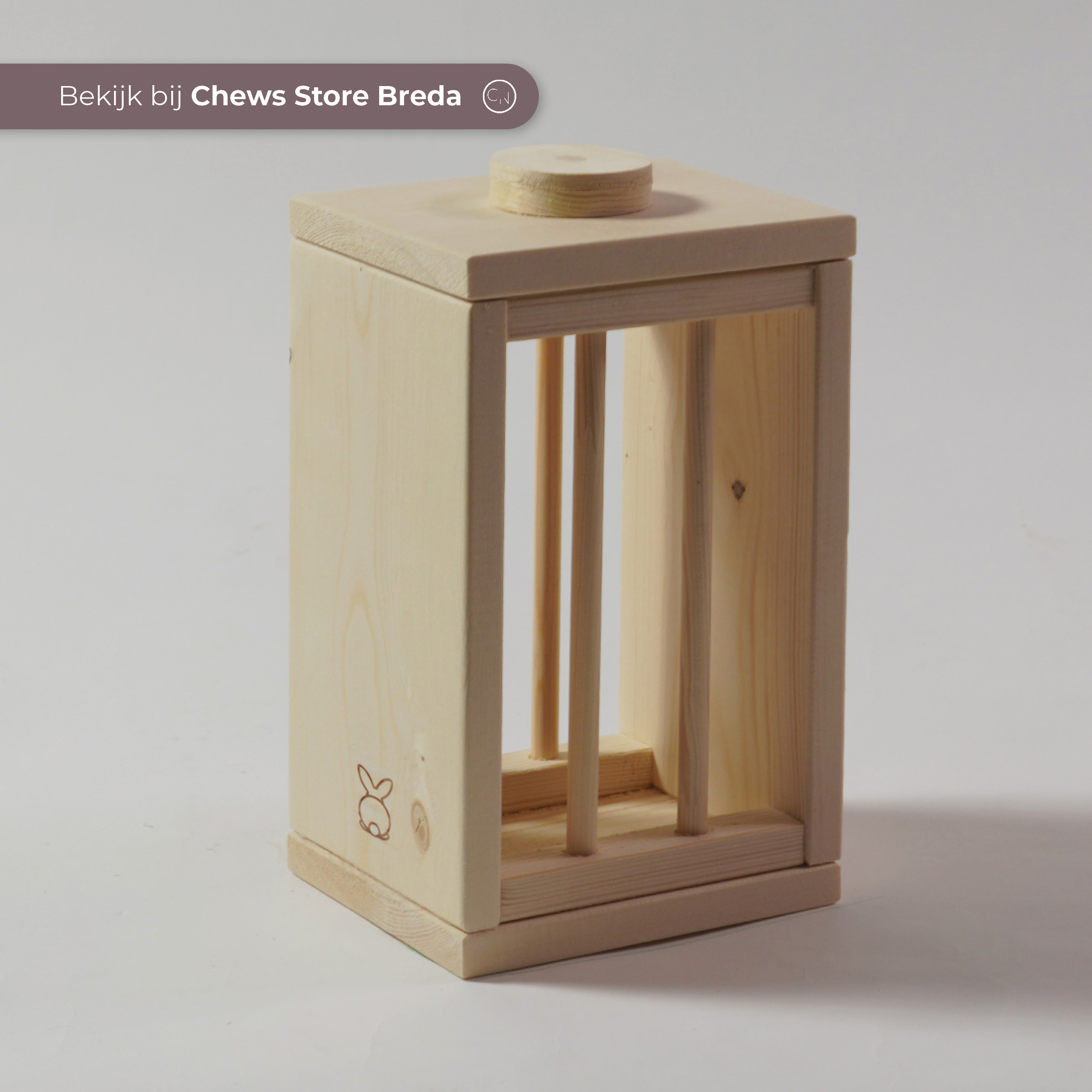 Hooiruif Vali is een staand houten hooiruif voor jouw konijn! Gebruik je creativiteit, want deze ruif is modulair met andere atelier producten. Vul het hooiruif makkelijk via de klep aan de bovenzijde en jouw konijn kan aan twee zijden knabbelen aan hooi! Het onbewerkte hout is veilig voor konijnen.