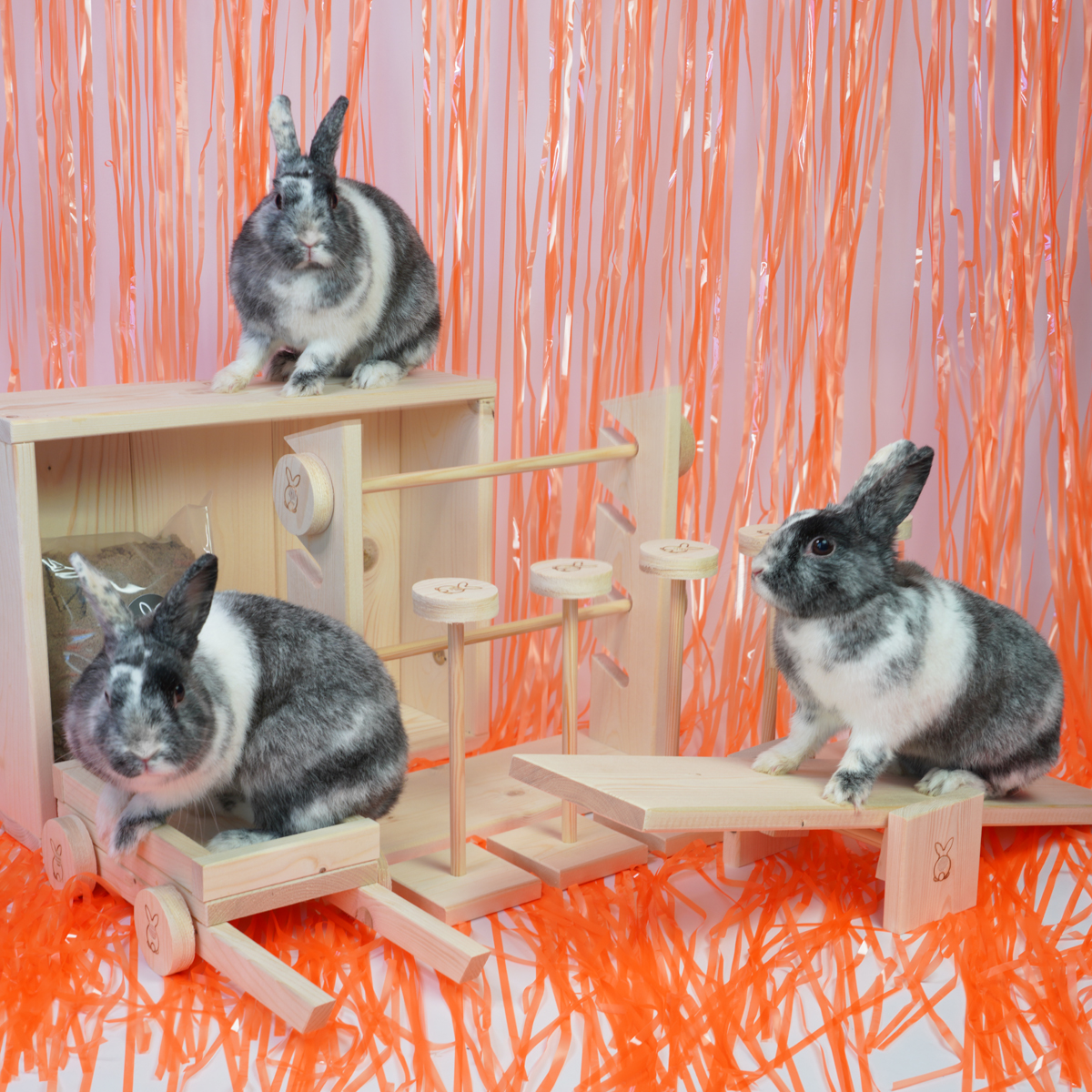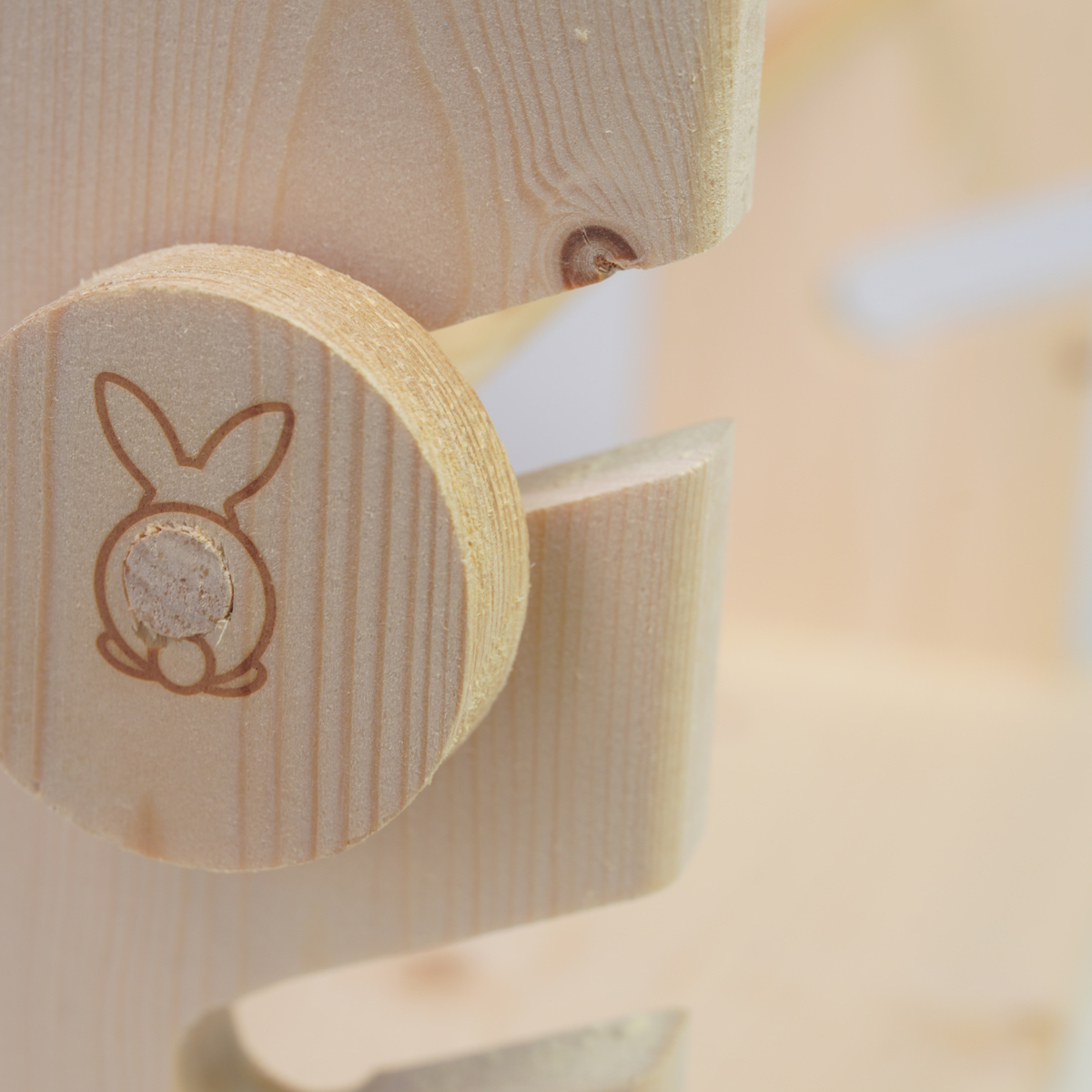 Deze konijnenhindernissen zijn met zorg handgemaakt in ons eigen atelier van onbewerkt vurenhout, een natuurlijk en konijnveilig materiaal.
