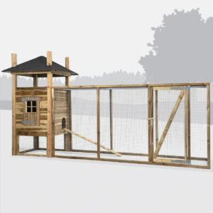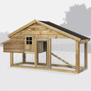 Dit verblijf wordt binnen 6 werkdagen geleverd. De hooiberg wordt gemonteerd geleverd. De ren wordt geleverd in panelen en is eenvoudig zelf te monteren. Let op dat de doorgang naar de tuin groot genoeg is!