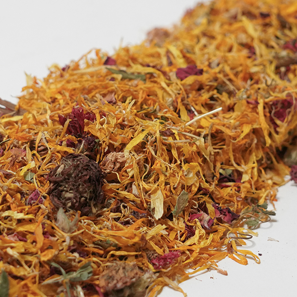 Goudsbloem, rode klaver (30%), rozenbloesem, rode korenbloem, madeliefjes (3%)