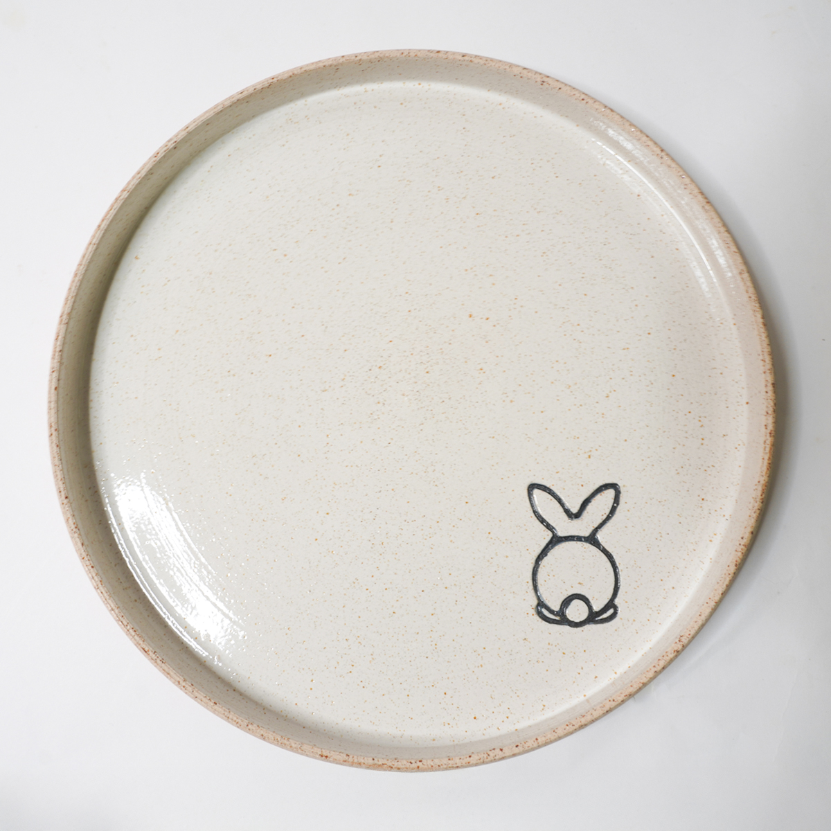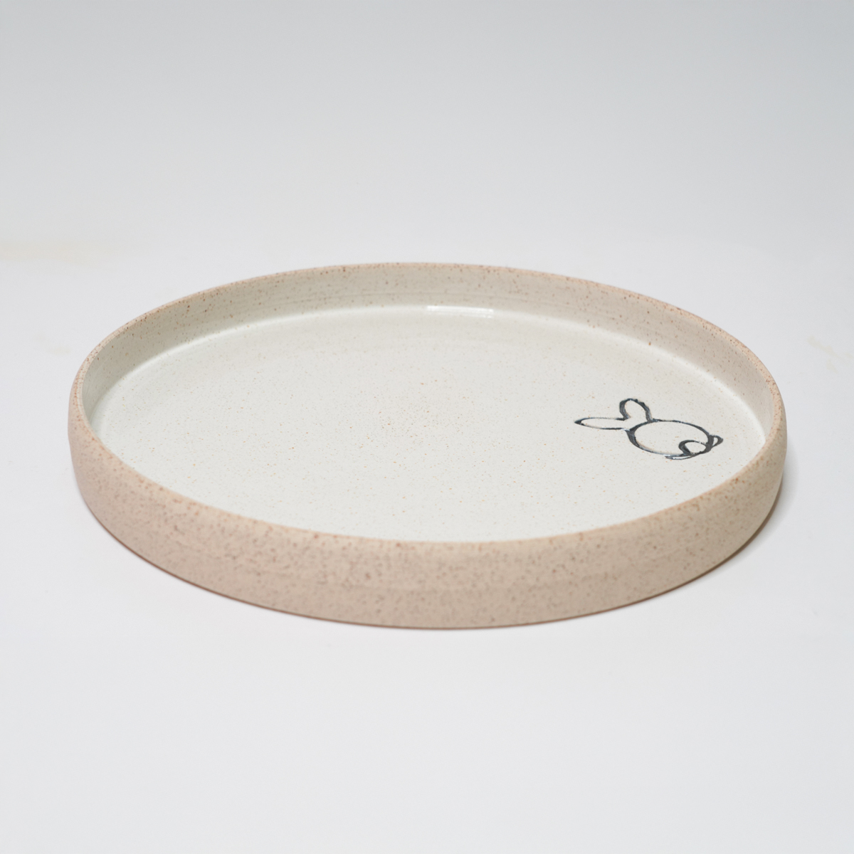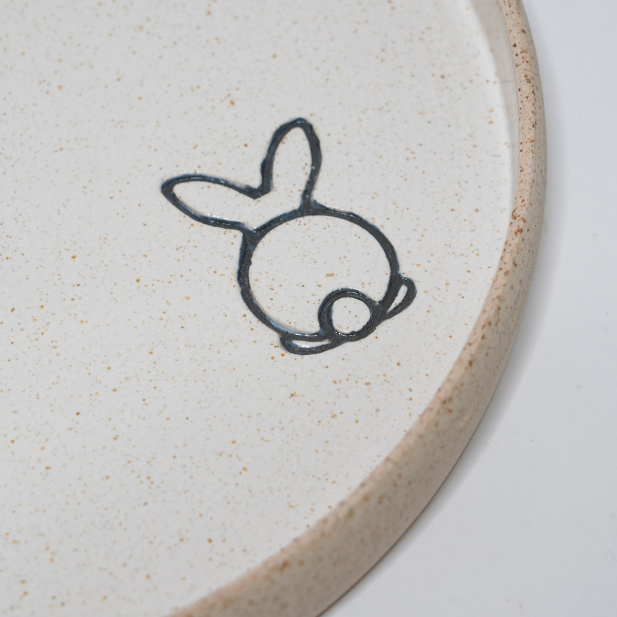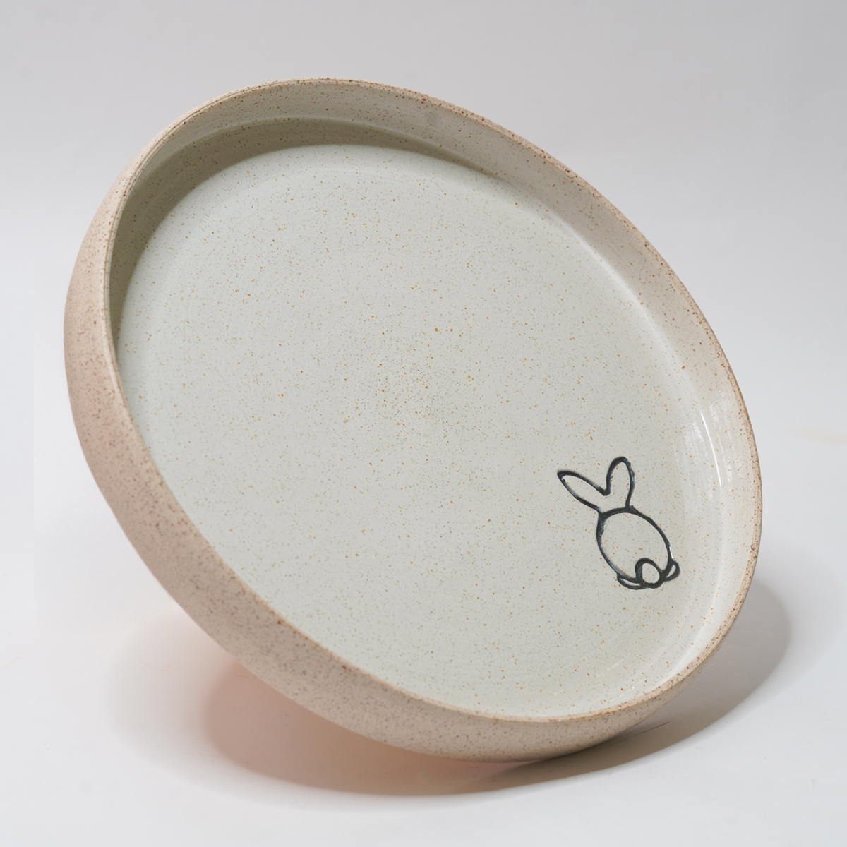 De kruidenschaal is gedraaid van een spikkelklei en voorzien van een wit glazuur.