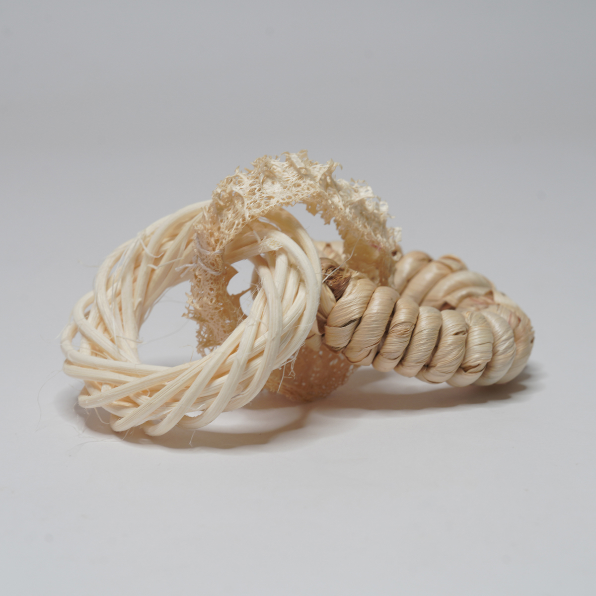 Deze set met drie ringen is een heerlijk natuurlijk speeltje voor jouw konijn! De ringen zijn gemaakt van 100% plantaardige materialen zoals luffa, rotan en maïslies. Volledig veilig om op te knabbelen.