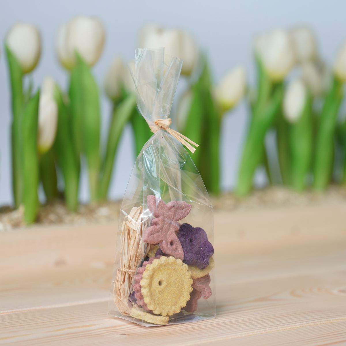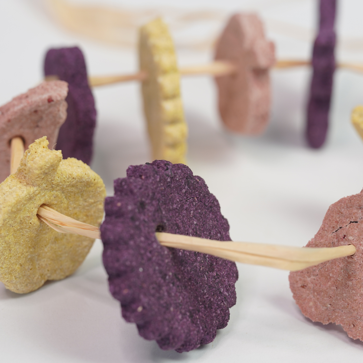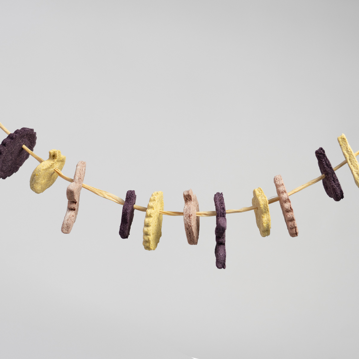 Deze slinger is een leuke en interactieve manier om jouw konijn te laten genieten van onze koekjes. Met het bijgeleverde raffia kun je zelf steeds een afwisselde slinger maken en je konijn bezighouden. De slinger bevat verschillende koekjes van verschillend fruit, als aardbei, blauwe bes en mango.