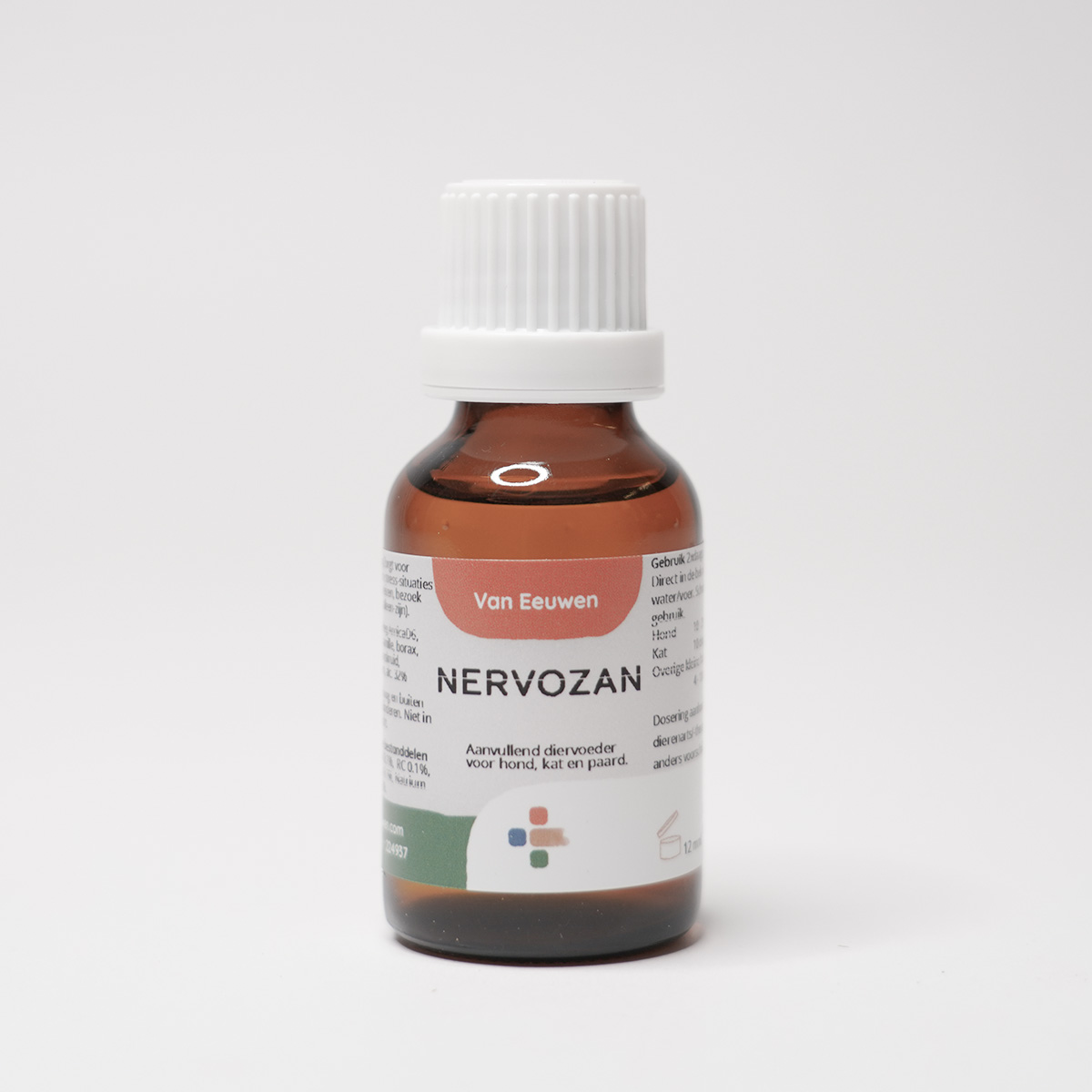 Nervozan van Van Eeuwen biedt een natuurlijke oplossing bij stress en onrust. De verschillende plantenextracten, zoals kamille, valeriaan en passiebloem ondersteunen jouw konijn. Je kan Nervozan inzetten bij een spannende situatie, bijvoorbeeld een dierenartsbezoek of met hitte-stress (in de zomer).