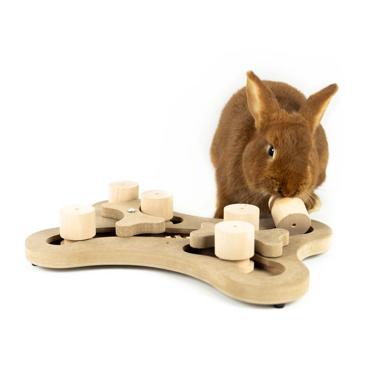 De Play & Find deluxe is een uitdagend, houten denkspel voor jouw konijn! Door het gewicht is dit spel geschikt voor grotere konijnenrassen.