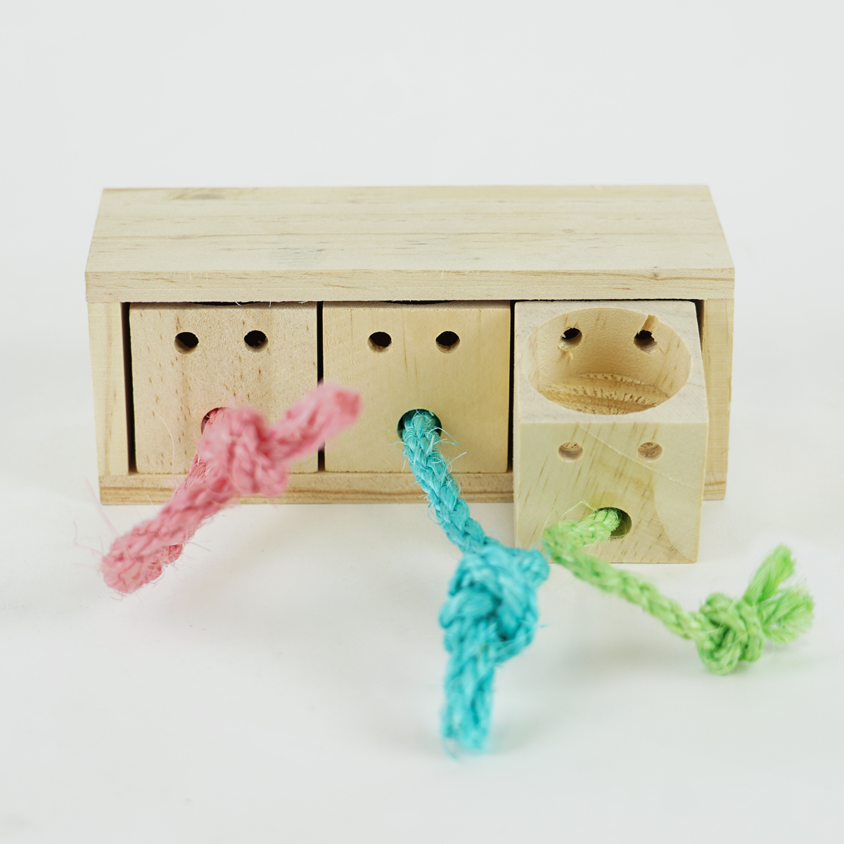De Pull & Find wood is een uitdagend denkspel voor jouw konijn! Door de lades te openen komt jouw konijn bij de beloning.