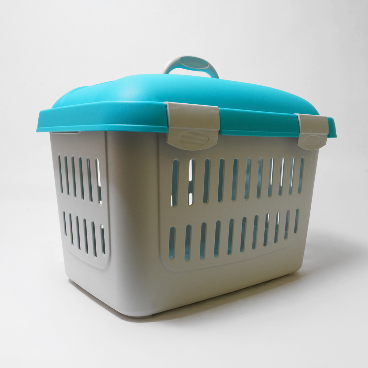 Deze lichtgrijs met blauwe reismand is ideaal om jouw konijn te vervoeren naar de dierenarts of vakantieopvang. De reismand is aan de bovenkant te openen, waardoor je makkelijk je konijn erin kan plaatsen.