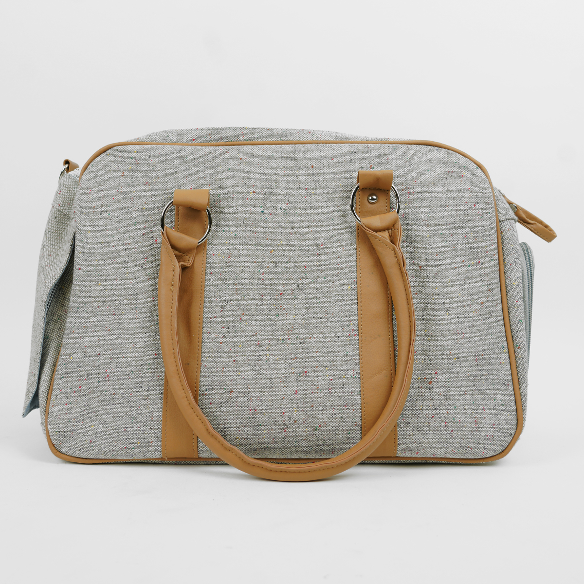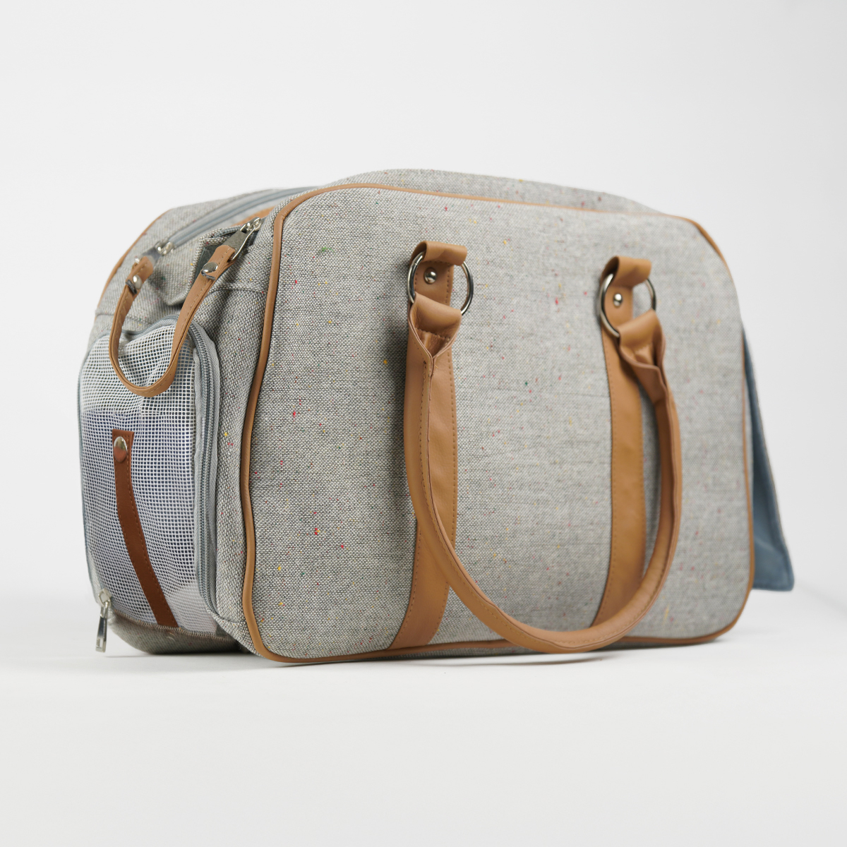 De reistas komt met schouderriem en heeft vakken aan de buitenzijde om bijvoorbeeld snacks of het vaccinatieboekje in op te bergen.