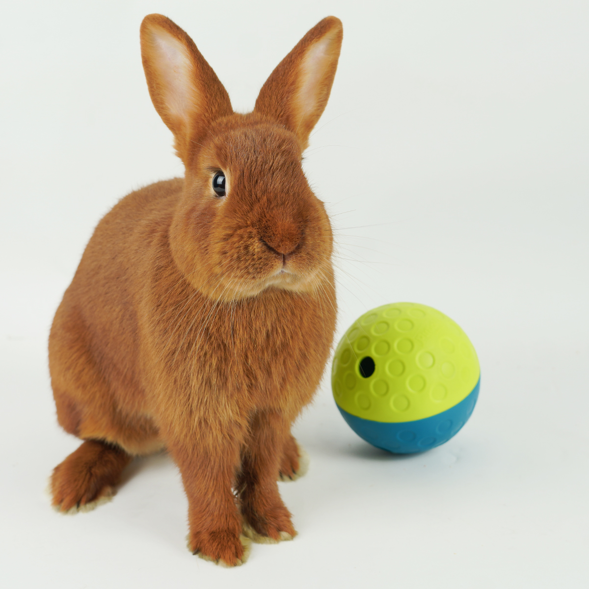 Vul de snackbal met een beloning of brokjes. Door de bal te laten rollen komt jouw konijn bij de beloning.