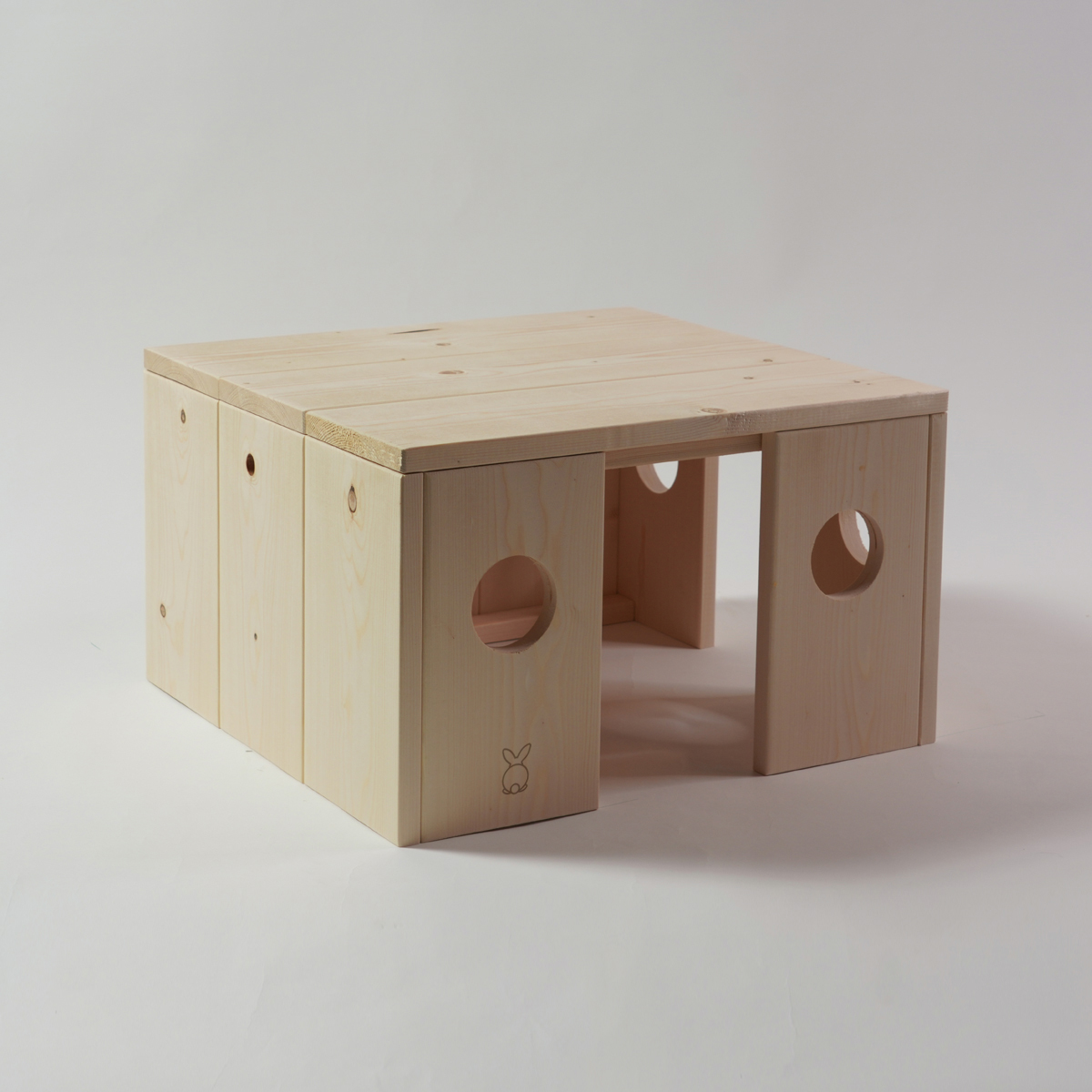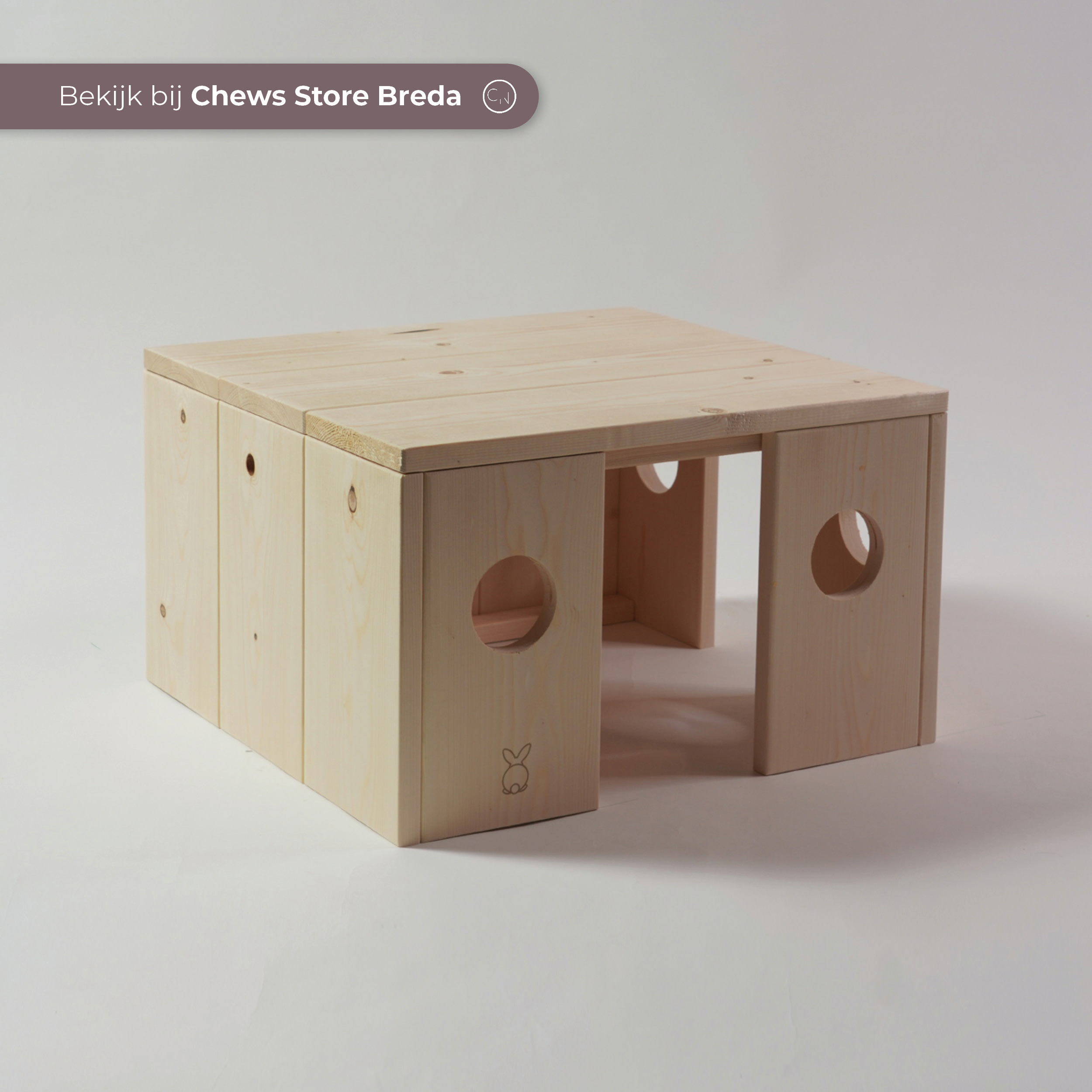 Schuilhuis heimdall is een houten schuilhuis voor jouw konijn! Gebruik je creativiteit, want dit schuilhuis is modulair met andere heimdall en atelier producten. En door het neutrale uiterlijk past deze schuilplek in ieder verblijf. Het onbewerkte hout is veilig voor konijnen.