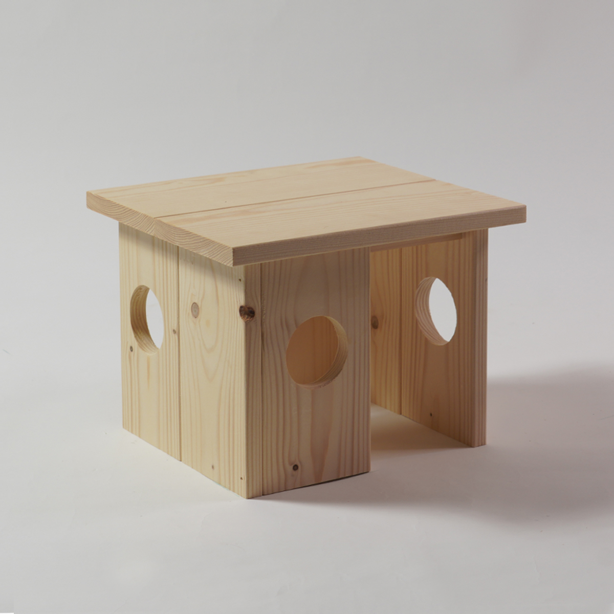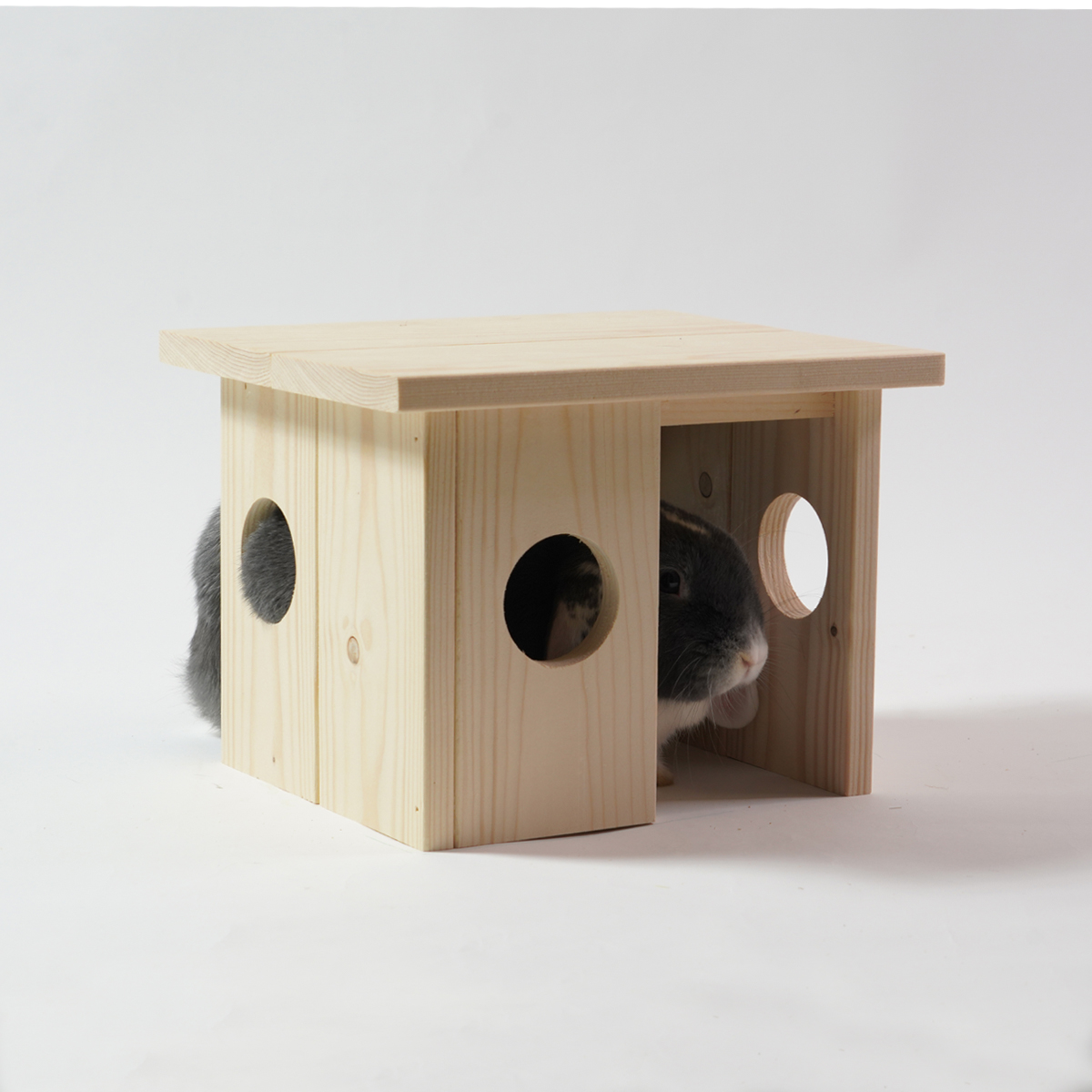 Schuilplek Syn is een houten schuilplek voor jouw konijn! Door het neutrale uiterlijk past deze schuilplek in ieder verblijf. Het onbewerkte hout is veilig voor konijnen.