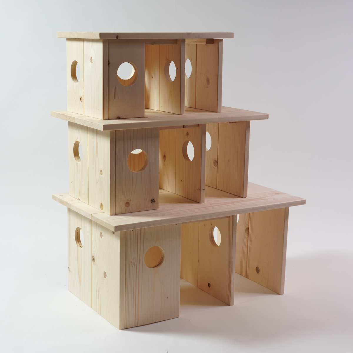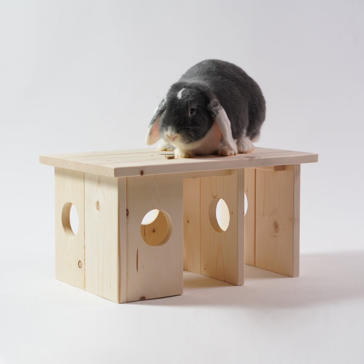 Schuilplek Ymir is een houten schuilplek voor jouw konijn! Door het neutrale uiterlijk past deze schuilplek in ieder verblijf. Het onbewerkte hout is veilig voor konijnen.
