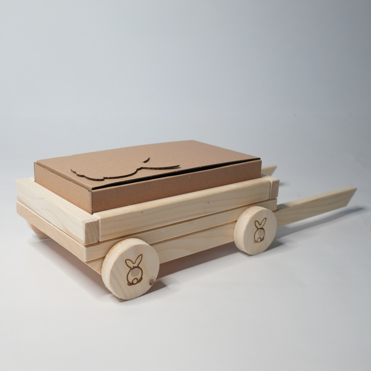 Dankzij de draaiende wielen kan de wagen echt rollen, wat jouw konijn uitnodigt om te duwen, onderzoeken en spelen.