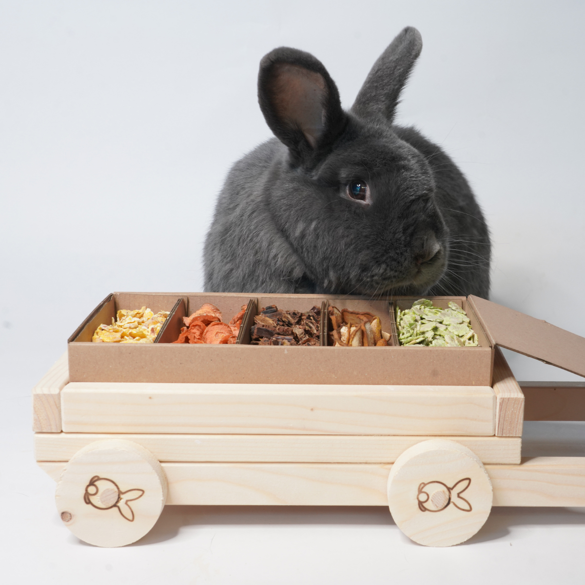Deze snackwagen wordt in ons atelier gemaakt. Het hout dat wordt gebruikt is onbewerkt vuren en daarmee veilig voor jouw konijn. Ieder exemplaar is uniek en kan iets afwijken van het voorbeeld.