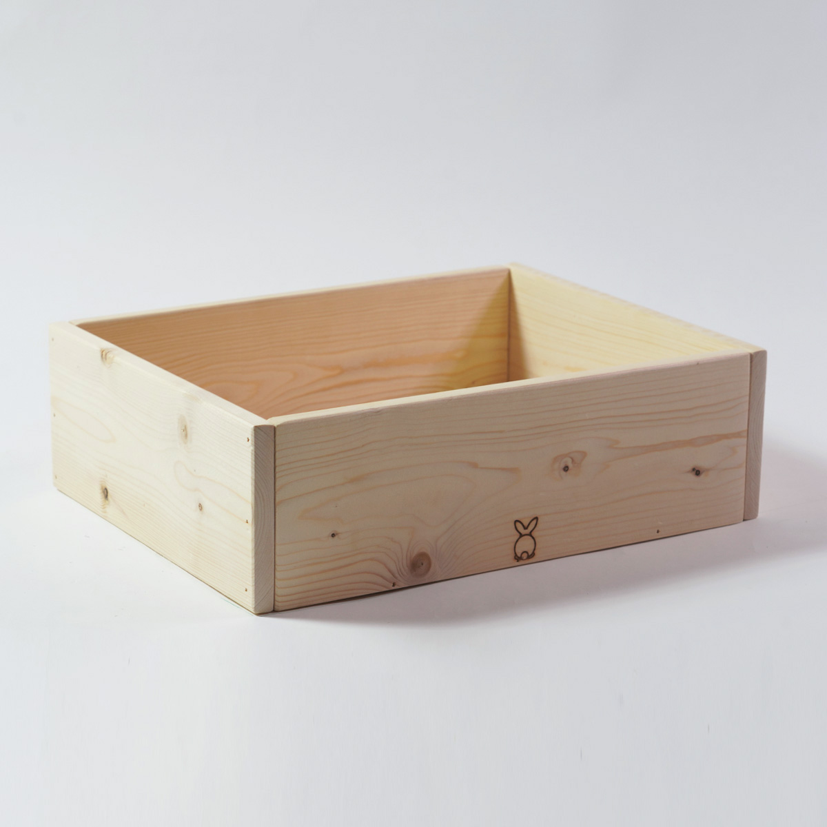 Deze snuffelbak wordt in ons atelier gemaakt. Het hout dat wordt gebruikt is onbewerkt vuren en daarmee veilig voor jouw konijn. Wij kiezen er bewust voor om geen knaagstrips te plaatsen, omdat de coating in het ijzer/aluminium giftig is voor konijnen.