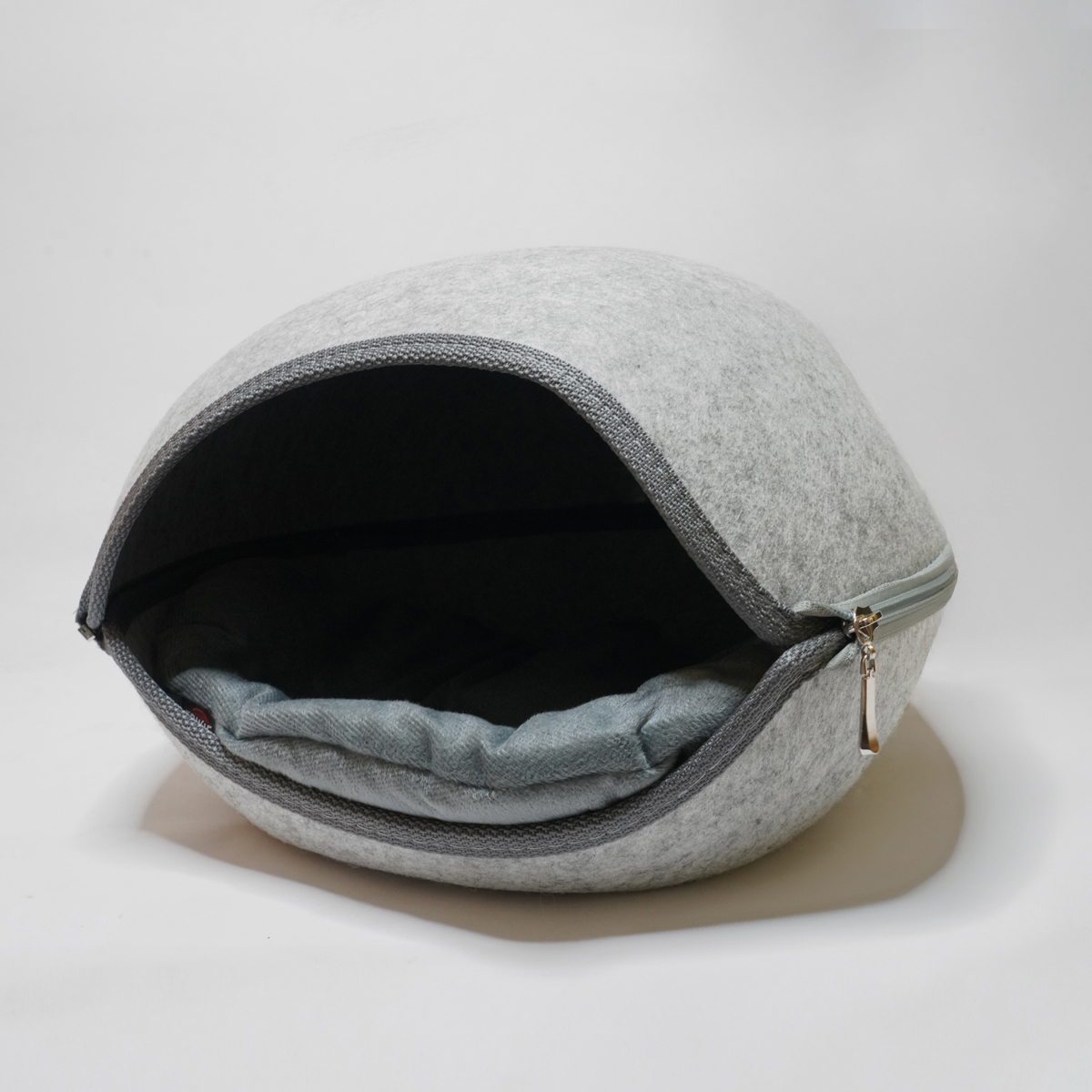 De Soft hiding shell is gemaakt van vilt (polyester). Het kussentje is gemaakt van polyester met een vulling van polyestervlies. De bovenzijde van de schuilplaats is af te nemen door een ritssluiting. Hierdoor kan het product ook als mandje worden gebruikt.
