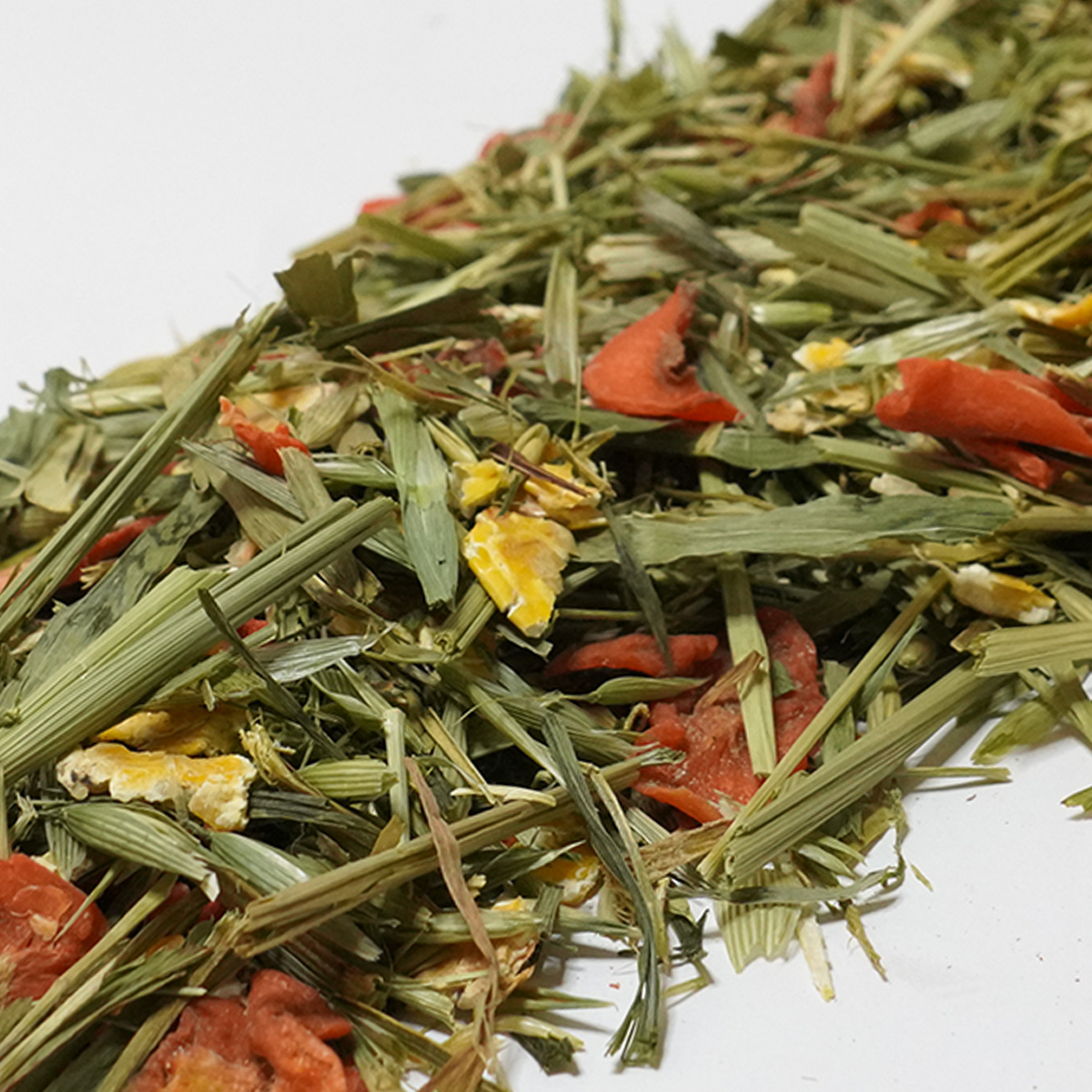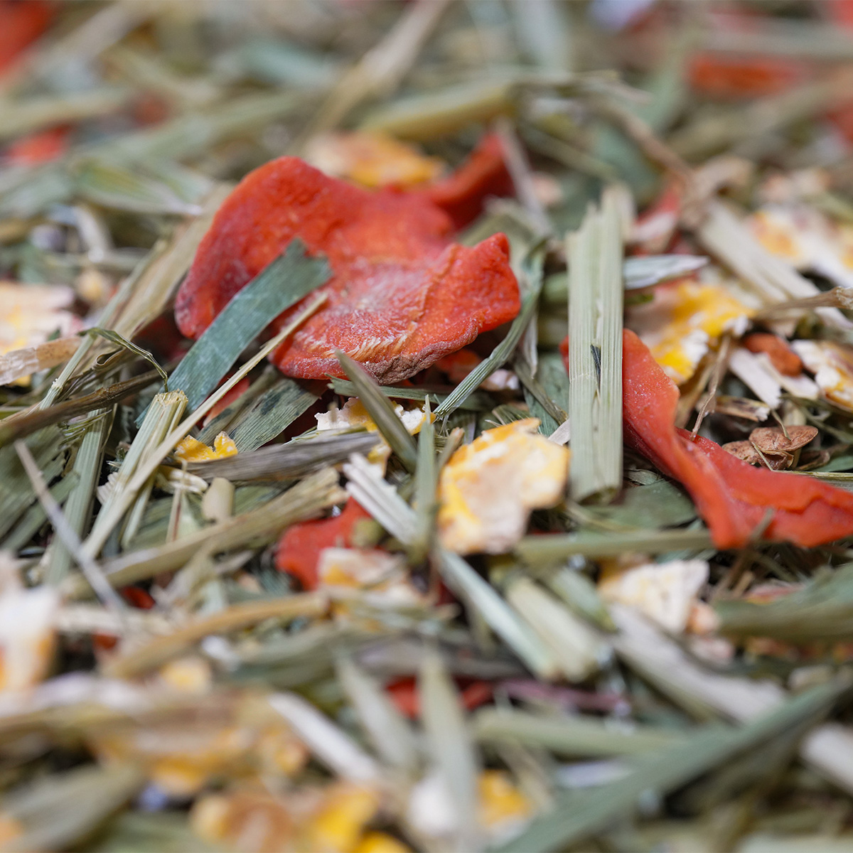 Kruiden zijn een aanvullend diervoeder. Geef deze daarom als aanvulling op het dagelijkse hooi.