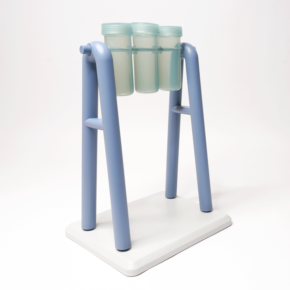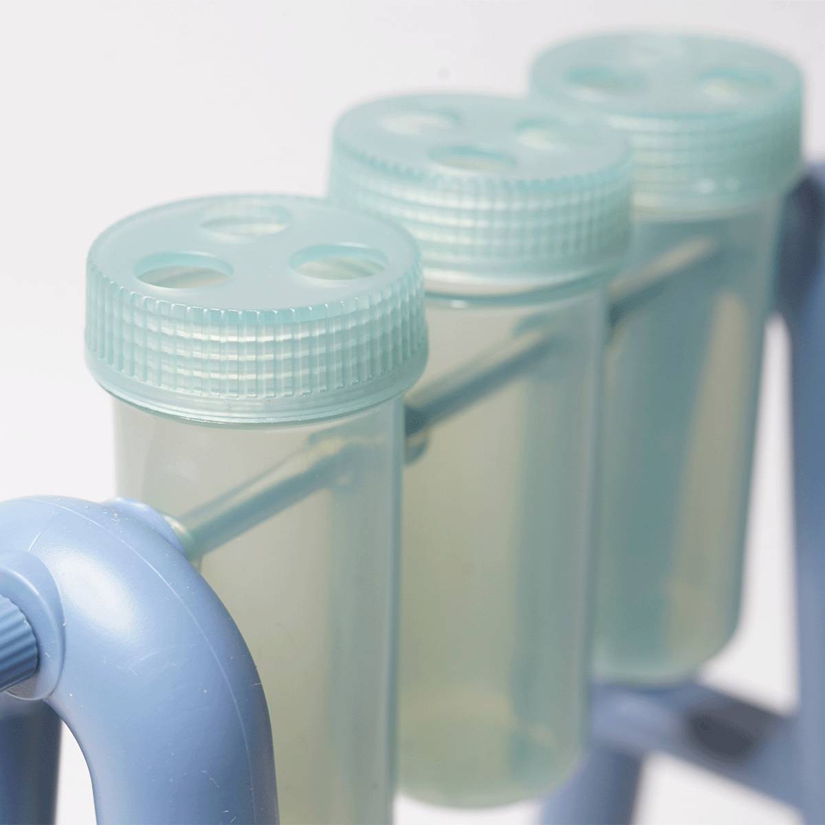 Je kunt de moeilijkheidsgraad van dit spel ook wat aanpassen door de twee bijgeleverde deksels voor de bekers. Met de ene deksel vallen de brokjes eenvoudiger uit de kokers dan met de andere.