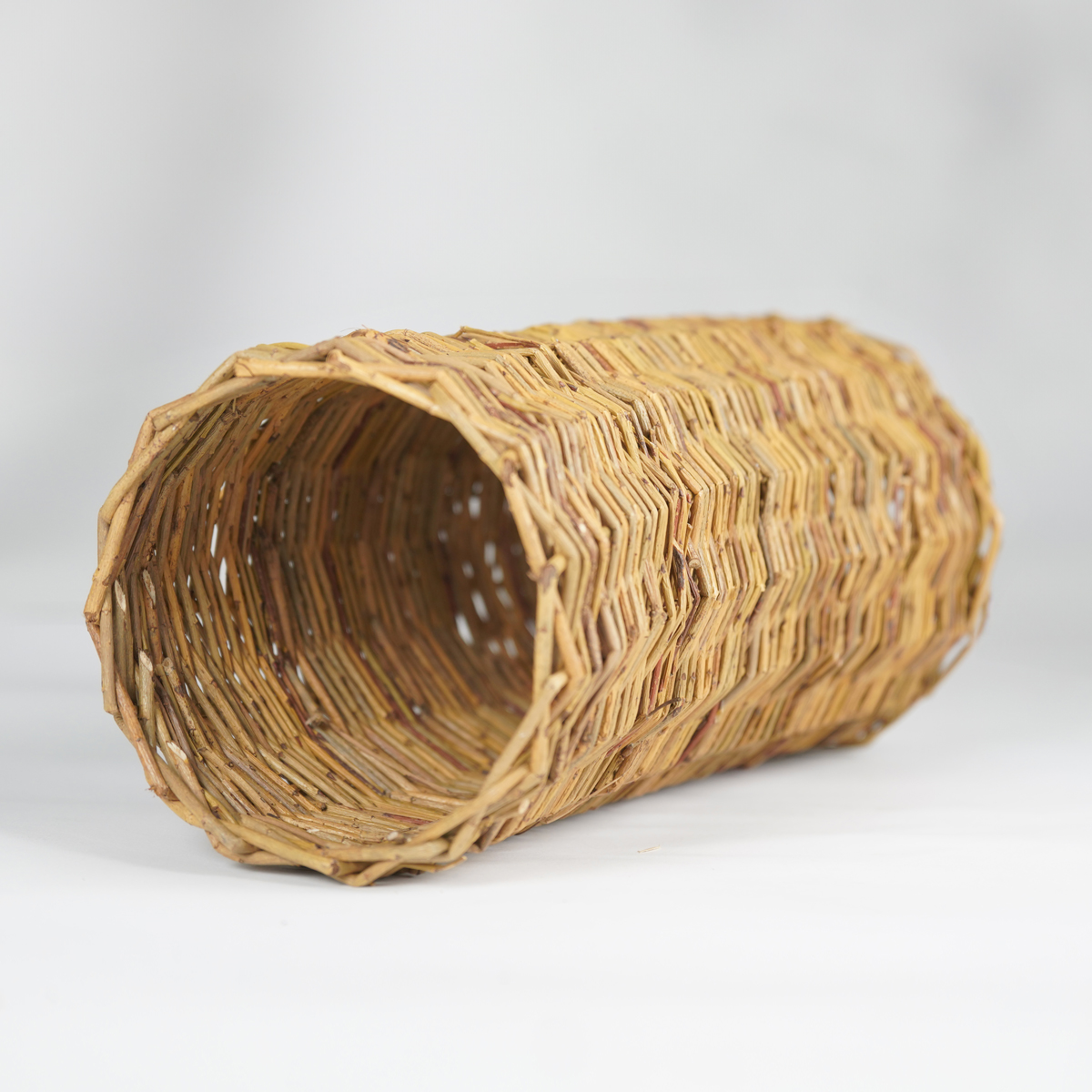 De wilgentunnel is gemaakt van wilgentakken en dus 100% natuurlijk. Veilig voor jouw konijn om aan te knagen en op te eten. Het knagen aan de wilgentunnel bevordert de tandslijtage.